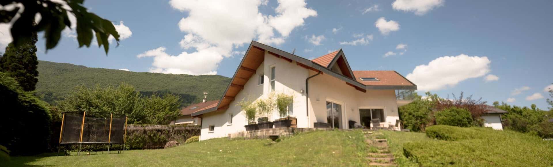 Nouveau! Sevrier coté Lac, vaste villa d'architecte édifiée en 2002 sur 1500m2 de terrain environ, 180M2 HABITABLES , vaste espace de vie (70m2 environ salon+cuisine équipée), 5 chambres dont 1 suite parentale, chauffage au sol pompe à chaleur, garage double et sous sol complet avec cave à vin, buanderie et local technique ....