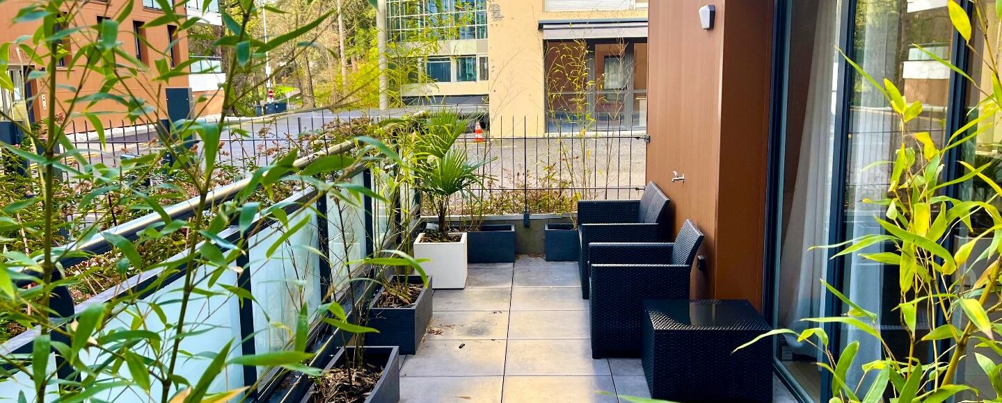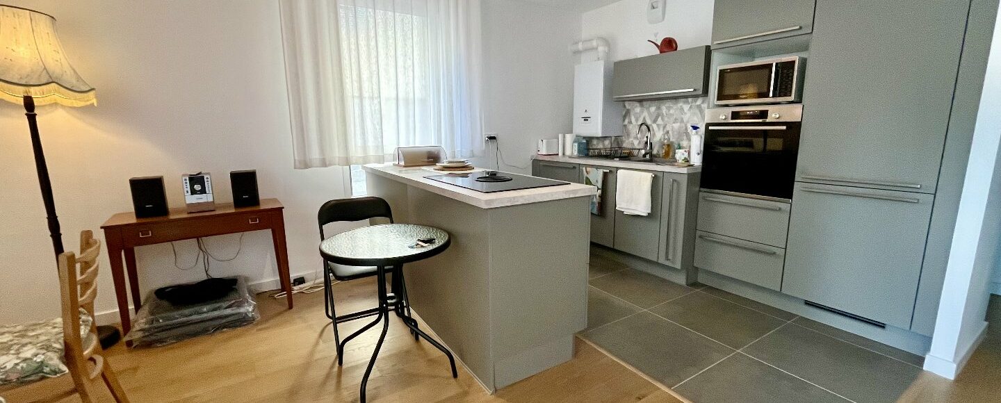 Opportunité rare à saisir ! En exclusivité à Aix Les Bains dans la résidence de standing Le Kyoto, livrée en 2024, à proximité immédiate du Parc de Verdure, du Centre des Congrès et des commerces de la rue de Chambéry, appartement Type 2 de 53.75 m² en rez de terrasse avec accès privatif. Ce logement aux normes PMR est organisé comme un petit pavillon bénéficiant d'une triple exposition Sud, Ouest et Nord. D'une surface confortable et aménagée avec goût, il comprend une jolie pièce de vie avec cuisine équipée neuve de belle gamme ouverte sur le séjour, une chambre donnant sur le patio de la résidence, un hall avec rangement, une élégante salle d'eau avec buanderie intégrée et un WC séparé. L'accès au logement se fait par le jardin de la résidence. Une belle terrasse de 13 m² donnant à l'ouest vous permettra de profiter des belles journées d'été. Un grand parking en zone verte (abonnement à 15€ le mois) se situe tout près de la résidence. Des garages et parkings privatifs sont proposés en location en centre ville. Les prestations incluent entre autres le chauffage individuel par le sol avec thermostat connecté et les volets roulants électriques connectés. Ne manquez pas l'occasion de découvrir ce logement haut de gamme idéal pour une résidence principale paisible au coeur d'Aix Les Bains ou pour un investissement locatif pérenne. Prix TTC et Honoraires à charge vendeur TTC Bien soumis au statut juridique de la Copropriété. Nb de lots : 197 dont 74 appartements répartis sur 3 bâtiments. Pas de procédure en cours. Bâtiment neuf sous garantie.Charges annuelles de copropriété (Montant moyen annuel quote-part du budget prévisionnel vendeur) : 733 €. Pas de procédure en cours.