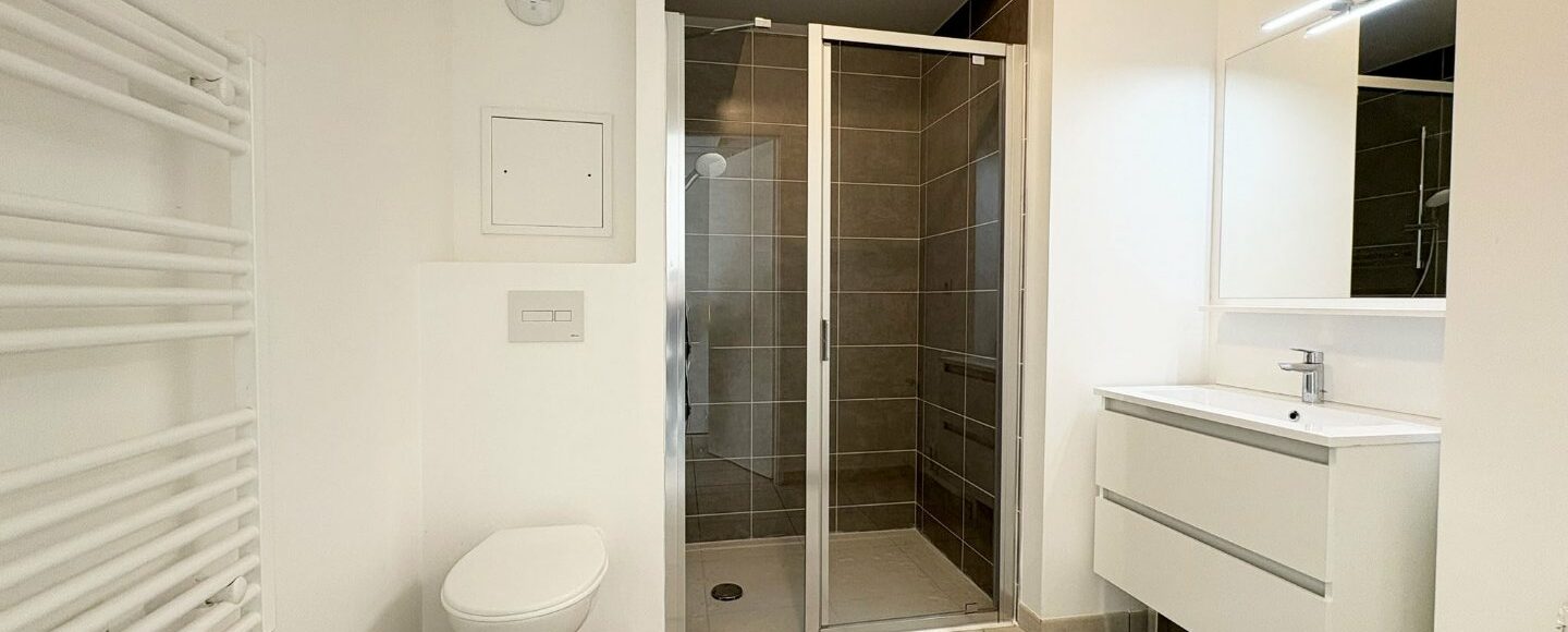 À Aix-les-Bains, secteur Hippodrome résidence 'PHILAE', découvrez cet appartement neuf 2 pièces de 41,48 m² situé au 3ème étage et orienté plein sud. [frais de notaire réduits] L’appartement se compose d’une entrée avec rangement, d’un séjour lumineux avec cuisine équipée et d’un accès à un balcon exposé sud, parfait pour profiter des beaux jours ! Une chambre de 12,45 m² avec placard intégré, une salle d’eau moderne équipée d’un WC suspendu. Le bien est vendu avec un garage sécurisé en sous-sol de la résidence. Avec ses prestations soignées, cet appartement représente une belle opportunité, que ce soit pour un investissement locatif, un pied-à-terre ou un premier achat. Côté confort, vous bénéficierez d’un chauffage collectif au gaz, de huisseries PVC double vitrage avec volets roulants électriques ainsi que d’un système domotique Somfy permettant de piloter à distance le chauffage, les volets et la sécurité. Contactez-nous dès maintenant pour organiser une visite de ce bien ! Frais de notaire réduits Bien soumis au statut juridique de la Copropriété.Nb de lots : 99 (hors annexes) Pas de procédure en cours. Prix TTC et Honoraires à charge vendeur TTC