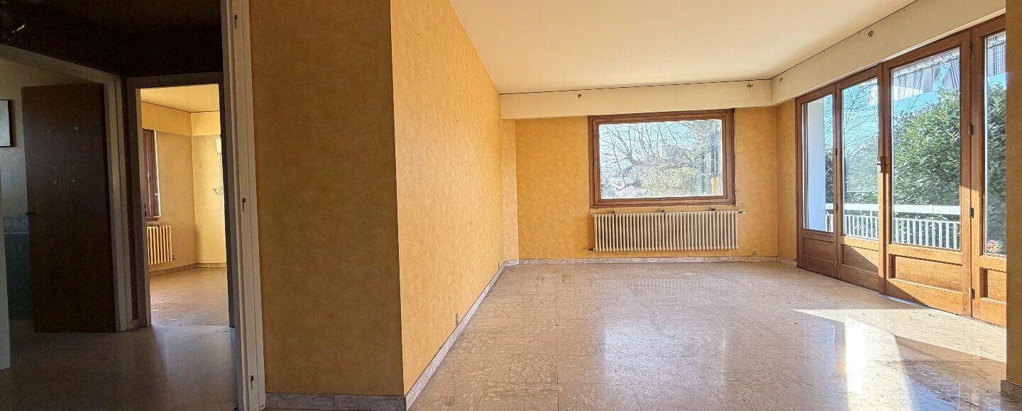 À Grésy-sur-Aix, secteur calme et verdoyant sur les premières hauteurs, à seulement 8 min d’Aix-les-Bains (3,6 km) et 5 min de l’école du village (2,5 km) – Appartement T4 duplex de 99 m² au sol (90,40 m² loi Carrez) proposé en plateau brut à aménager ! Situé au sein d’une copropriété intimiste de 4 logements, ce bien profite d’une triple exposition Est-Sud-Ouest avec de belles vues dégagées sur les montagnes et le lac. Le projet d’aménagement prévoit : -Au 1er niveau : séjour avec cuisine donnant sur un balcon en angle Sud/Ouest de 17 m², offrant une vue dégagée sur le lac et les montagnes et accès par escalier à un jardin privatif, WC indépendant. -À l’étage : dégagement, 3 chambres, salle d’eau, WC. Vendu avec un carport, une place de stationnement extérieure et une cave. Les aménagements intérieurs sont à réaliser par l’acquéreur, offrant une liberté totale de conception et la possibilité de créer un logement sur mesure. Les compteurs d’eau et d’électricité seront installés par les vendeurs. Une belle opportunité pour un projet de vie personnalisé dans un cadre verdoyant et recherché. Contactez votre agence WellCome Immobilier pour organiser une visite sur place ! Bien vendu dans le cadre d’une opération immobilière dont les démarches administratives sont en cours - Acquisition possible dès mars 2026, sous réserve de réalisation du projet. Bien soumis au statut de la copropriété. Nombre total de lots : 18 (annexes incluses). Pas de procédure en cours. Bien non soumis au DPE.