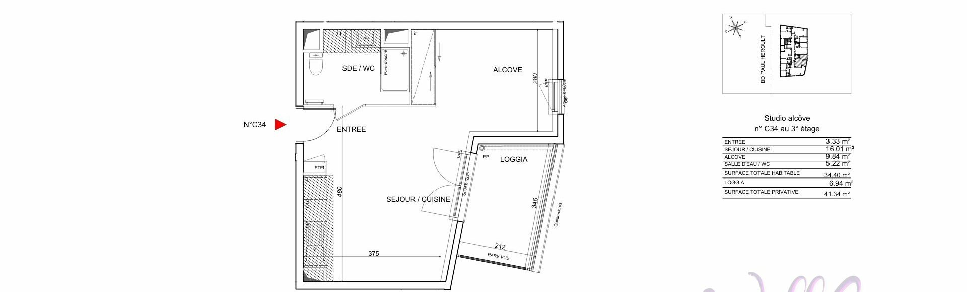 Superficie : 34 m²