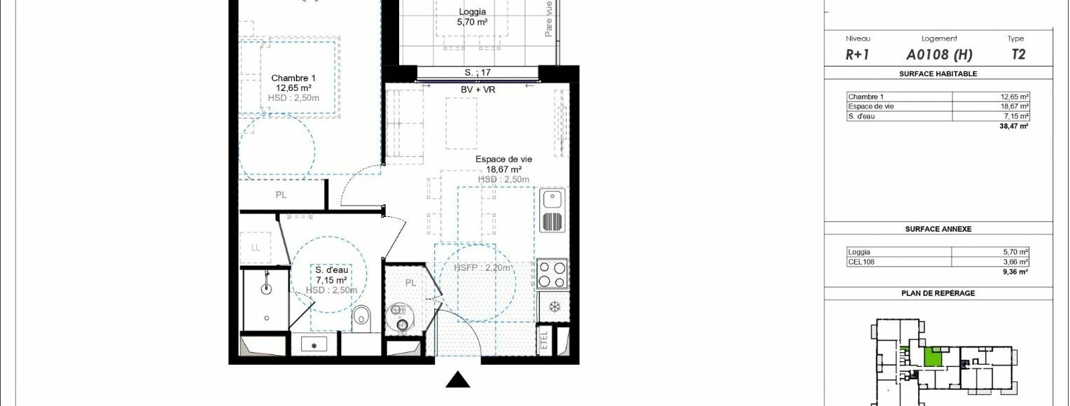 À Challes-les-Eaux, dans un emplacement central à seulement 400 m du centre-ville avec ses commerces et services accessibles à pied – Découvrez la nouvelle résidence « BEL HORIZON » nichée dans un environnement calme et verdoyant. Livraison prévue pour le 4ème trimestre 2027 et actable dès maintenant ! Cette résidence à l’architecture élégante et contemporaine se compose de 2 bâtiments à taille humaine de 2 étages + attique et propose des appartements neufs du studio au 5 pièces avec espace extérieur privatif (jardin, terrasse ou balcon). Des stationnements et cave sont prévus en sous-sol sécurisé ainsi que quelques places visiteurs en extérieur. Un local à vélos est également présent. Parmi les lots disponibles, découvrez le lot n°A0108 : Un appartement 2 pièces de 38,47m² au 1er étage et comprenant séjour-cuisine, chambre, salle d’eau avec wc, loggia de 5,70m² et cellier. Vendu avec un parking au sous-sol. Idéal pour habiter ou investir dans cette ville dynamique et attractive des Alpes ! Contactez-nous dès maintenant pour en savoir plus et réserver votre futur appartement parmi les premiers lots disponibles ! Frais de notaires OFFERTS ! Programme conforme RE 2020, seuil 2022 Éligible Pinel (zone B1), LLI, Accession Libre Bien soumis au statut juridique de la Copropriété. Nb de lots : 36 (hors annexes) Pas de procédure en cours. Prix TTC et Honoraires à charge vendeur TTC