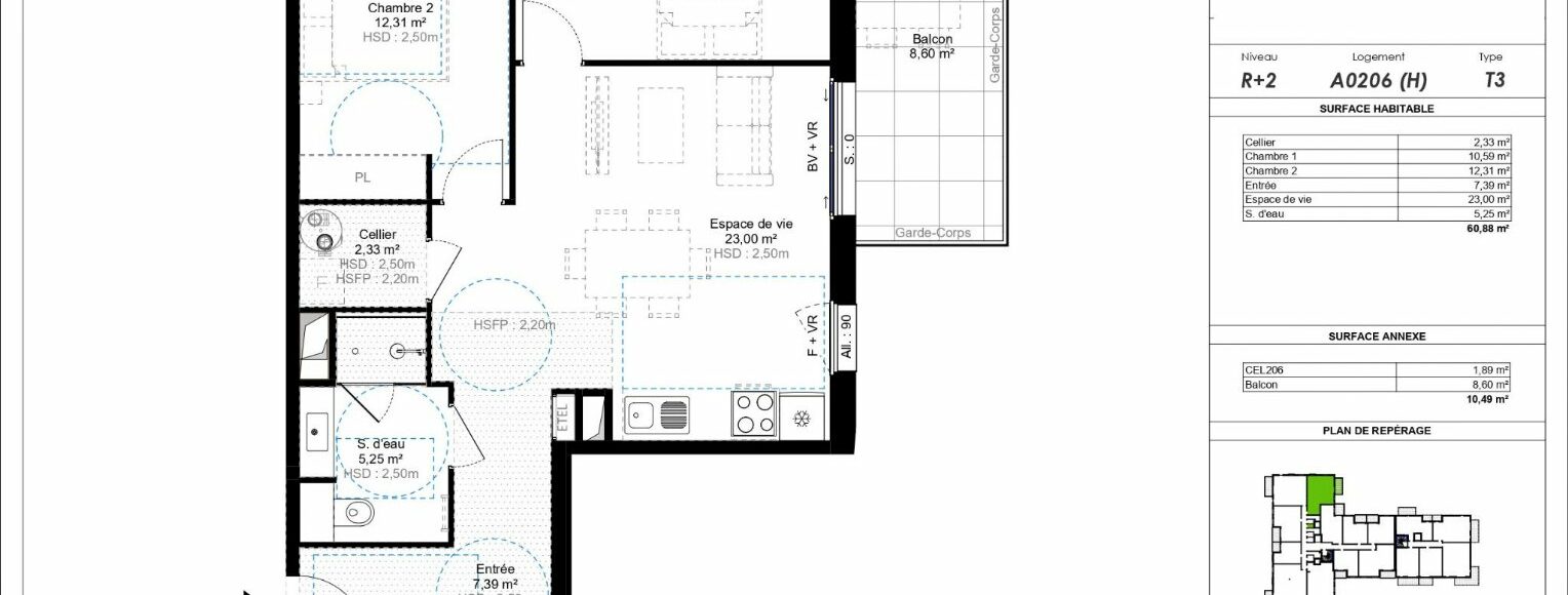 À Challes-les-Eaux, dans un emplacement central à seulement 400 m du centre-ville avec ses commerces et services accessibles à pied – Découvrez la nouvelle résidence « BEL HORIZON » nichée dans un environnement calme et verdoyant. Livraison prévue pour le 4ème trimestre 2027 et actable dès maintenant ! Cette résidence à l’architecture élégante et contemporaine se compose de 2 bâtiments à taille humaine de 2 étages + attique et propose des appartements neufs du studio au 5 pièces avec espace extérieur privatif (jardin, terrasse ou balcon). Des stationnements et cave sont prévus en sous-sol sécurisé ainsi que quelques places visiteurs en extérieur. Un local à vélos est également présent. Parmi les lots disponibles, découvrez le lot n°A0206 : Un appartement 3 pièces de 60,88 m² au 2ème étage et comprenant entrée, séjour-cuisine, 2 chambres, salle d’eau avec wc, balcon de 8,90m² et cellier. Vendu avec 2 box fermés au sous-sol. Idéal pour habiter ou investir dans cette ville dynamique et attractive des Alpes ! Contactez-nous dès maintenant pour en savoir plus et réserver votre futur appartement parmi les premiers lots disponibles ! Frais de notaires OFFERTS ! Programme conforme RE 2020, seuil 2022 Éligible Pinel (zone B1), LLI, Accession Libre Bien soumis au statut juridique de la Copropriété. Nb de lots : 36 (hors annexes) Pas de procédure en cours. Prix TTC et Honoraires à charge vendeur TTC Surface CARREZ : 60.88 m²
