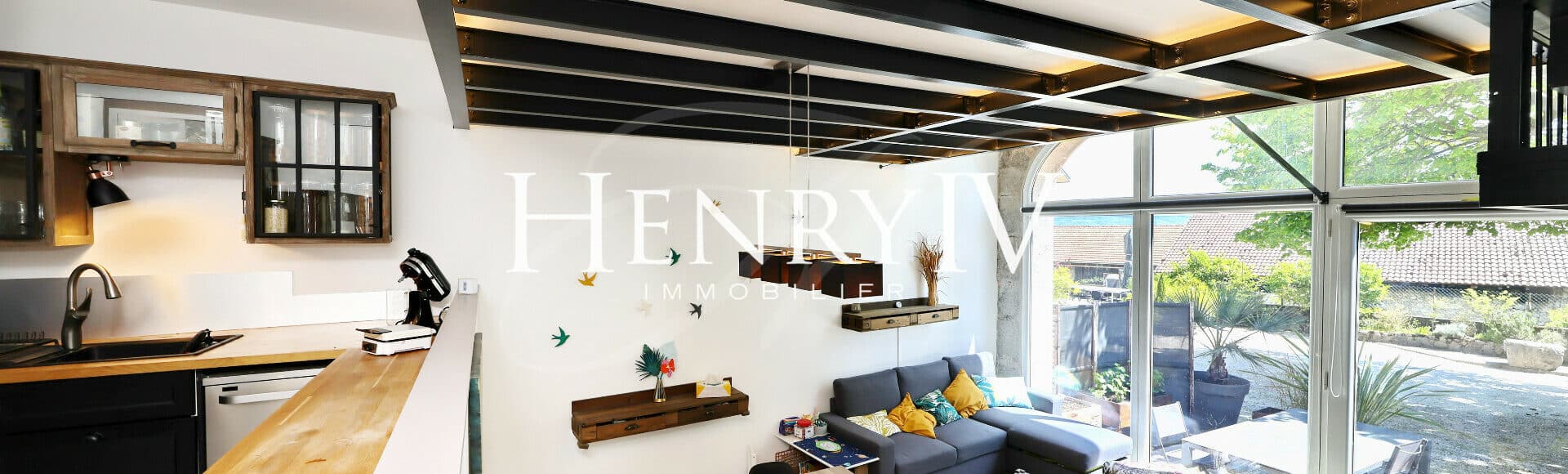 Superbe maison entièrement rénovée en 2015 et aménagée dans une vieille bâtisse en pierres, sa surface est d'environ 130 m2, elle est composée de 4 chambres, 1 salle de bains et une salle d'eau, 2 WC, 1 dressing, une belle cuisine aménagée et une pièce de vie ouverte sur une magnifique terrasse face à Belledonne, un garage et une buanderie. PANNEAUX PHOTOVOLTAÏQUES ET POMPE A CHALEUR sont installés pour le chauffage, l'eau chaude et la revente (environ 400€ / an) .Matériaux haut-de-gamme, huisseries aluminium, la rénovation est complète du sol à la toiture.