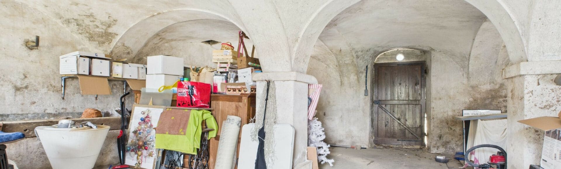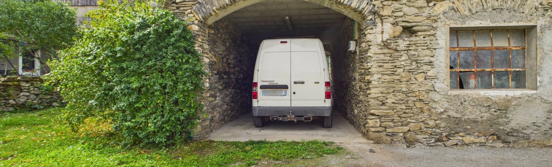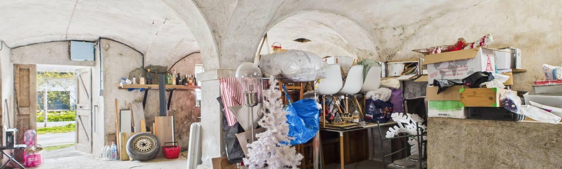 RDC : Un Grand garage avec porte électrique, une ancienne écurie avec un plafond vouté, un abri voiture, un petit jardin de 225 m².