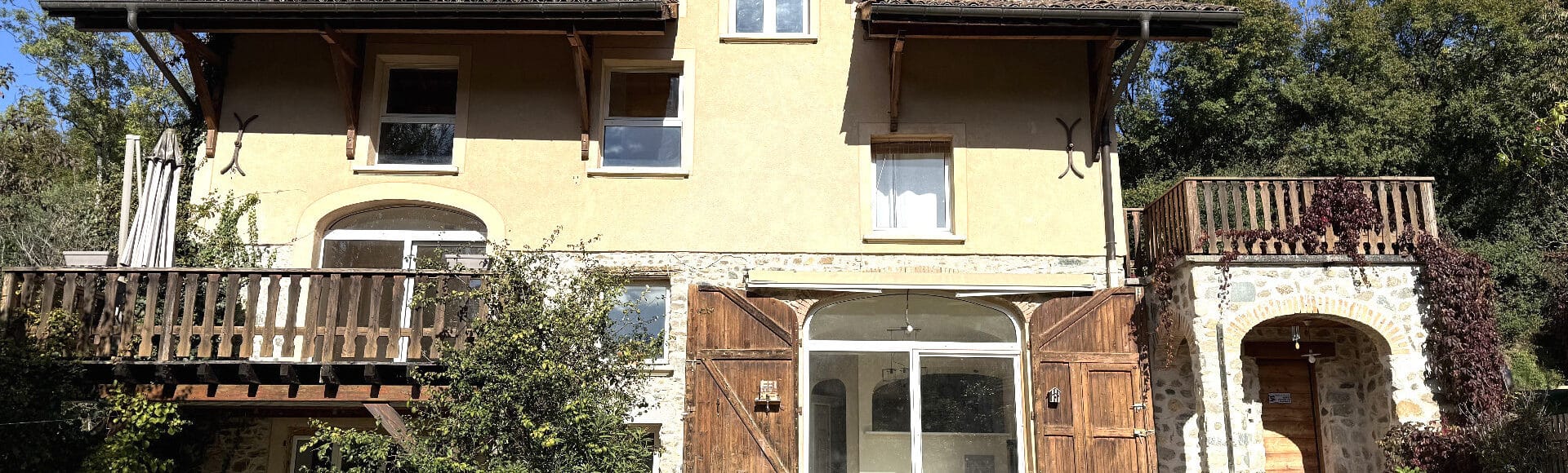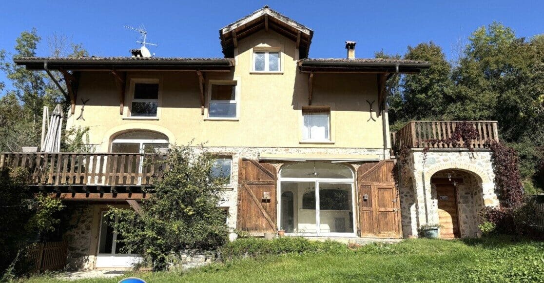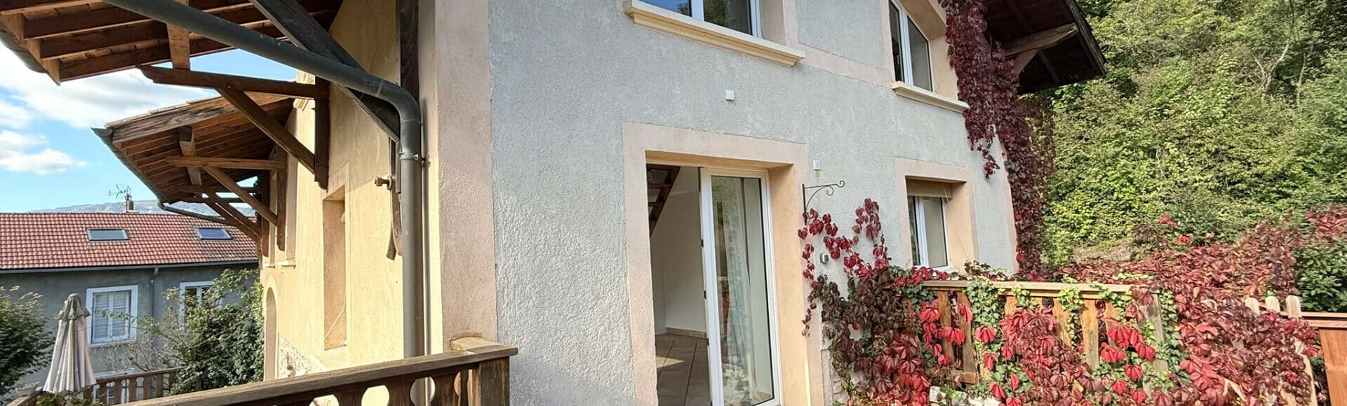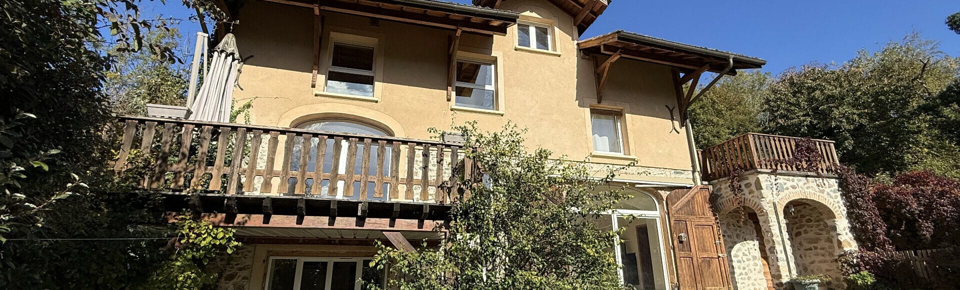 EN EXCLUSIVITE Emplacement recherché dans un écrin de verdure, à quelques minutes de Gières, vous serez séduit par cette belle bâtisse en pierre de 200 m² habitables réhabilitée en 1995 (grange du 19ème siècle rénovée) édifiée sur un terrain paysagé de 792 m². Elle présente un volume agréable en demi niveaux. Un hall d’entrée, une cuisine équipée donnant sur terrasse ouest, une spacieuse pièce de vie avec cheminée donnant sur terrasse Ouest, 3 chambres, un bureau, une salle de bain, 2 toilettes dont un indépendant et une pièce de rangement (ancien garage). Vous pouvez profiter également d'un appartement de type T2 de 40 m² en duplex avec terrasse comprenant une agréable pièce de vie avec cuisine équipée, une salle d'eau avec toilettes et une grande chambre à l'étage. Des places de parking et un abri jardin complètent ce bien. Les honoraires d'agence de 3,5 % TTC, inclus dans le prix de vente, sont à la charge de l'acquéreur. A découvrir sans tarder ! Contactez Mme RAMEZ au O6.17.O6.6O.71