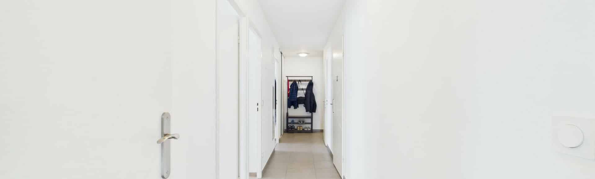 Descriptif : Dégagement avec grand placard, pièce de vie avec coin cuisine aménagée et équipée donnant sur une loggia.