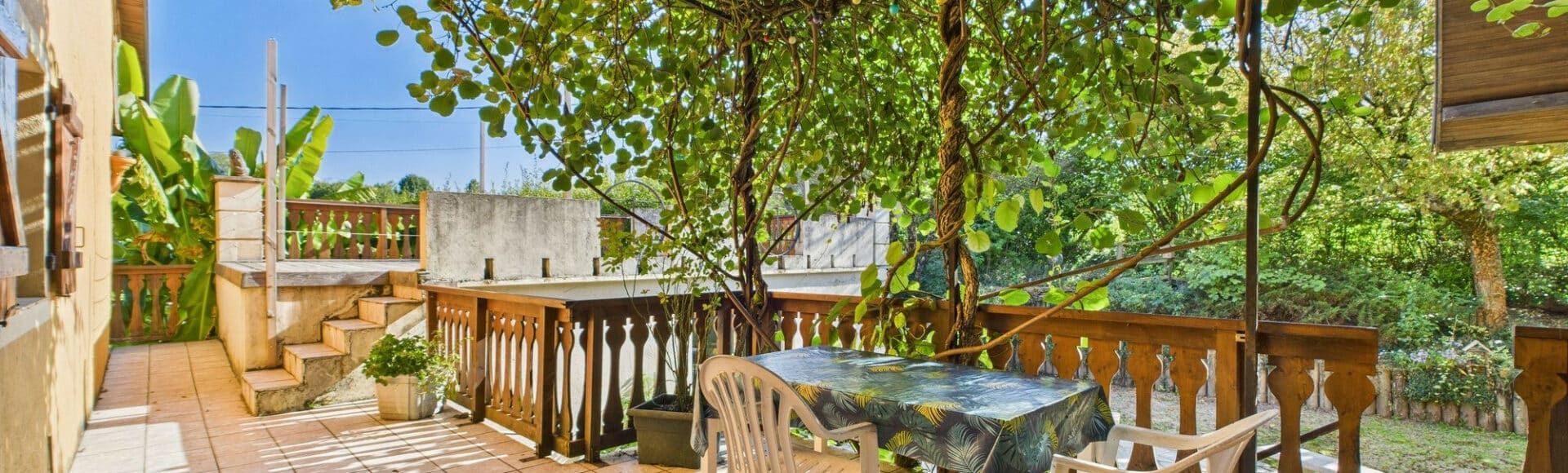 A l'extérieur: Sur une parcelle de 2500m2, un patio, une terrasse couverte, piscine chauffée (5m*10m), un jardin et un verger.