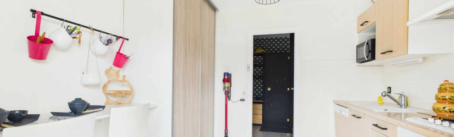 Descriptif : Hall d'entrée avec grand placard aménagé et espace bureau. Un salon séjour ainsi qu'une cuisine indépendante (qui peuvent être réunis) bénéficiants d'une bonne luminosité et d'un accès sur un grand balcon de 12,5m2 côté Ouest. Un dégagement qui dessert deux chambres de 10 et 12m2, une salle de bains et un wc indépendant.