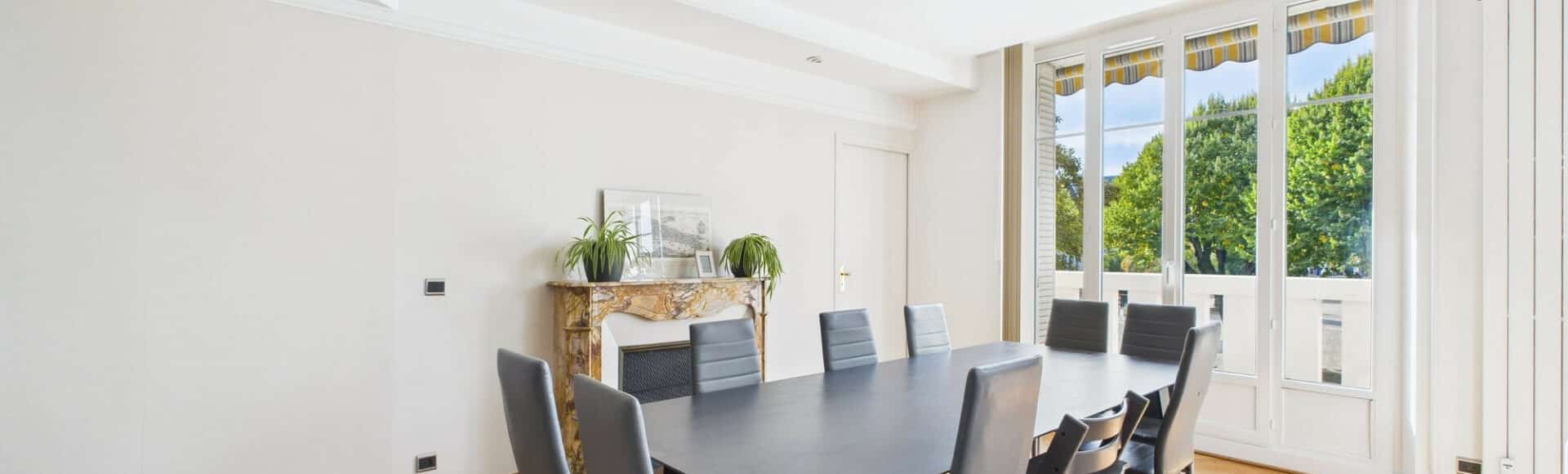 Ce spacieux T7 est situé au 1er étage d'un immeuble de style de 1936 avec ascenseur, situé à proximité du centre de Chambéry, proche des commerces, des écoles et des lignes de bus.