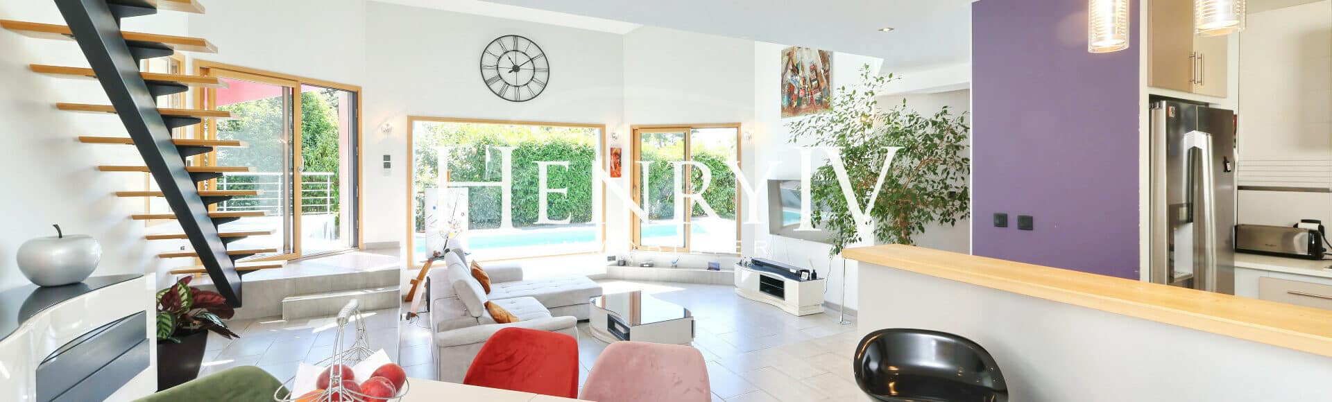 Située au fond d'une impasse, belle villa construite en 2006 par un architecte sur un terrain de 879 m2 composée d'une entrée desservant un grand vestiaire, une salle d'eau, un wc, une chambre, un séjour de 51 m2 agrémenté d'une cuisine ouverte sur le coin repas. A l'étage, 4 chambres dont 1 équipée d'une salle d'eau (+ baignoire), une salle de bains, un wc et une mezzanine qui surplombe le séjour déplafonné. Le jardin exposé sud-Est profite d'une jolie vue sur la chaîne de Belledonne, la piscine miroir apporte une grande originalité à cette propriété au calme et sans vis à vis.