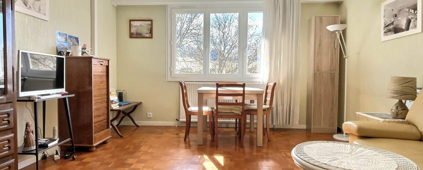 AIX LES BAINS coeur de ville au 7e et dernier étage (avec ascenseur) vues dégagées sur les montagnes appartement type 2 traversant Est/ Ouest de 56m². Vendu avec une cave. Ce logement fonctionnel comprend un hall d'entrée avec rangement, une cuisine récente équipée donnant sur une loggia aménagée en buanderie, un séjour de près de 21m² climatisé, une jolie chambre avec rangement, une salle d'eau récente et un WC séparé. Balcon à l'ouest avec vue sur Tresserve et la Dent du Chat. Cet appartement lumineux est chauffé grâce au chauffage collectif de la résidence. L'eau chaude est également incluse dans les charges. La résidence vient de voter un raccordement au réseau de chauffage urbain, aux frais du vendeur.Les huisseries sont récentes, en PVC double vitrage et oscillo-battantes. La résidence est sécurisée et bien fréquentée. Ses façades ont été récemment ravalées. Son emplacement est idéal pour votre projet puisque tous les commerces et services sont à proximité immédiate. Pour le stationnement, vous disposerez d'un parking public en zone verte à proximité immédiate. (abonnement à 15€ / mois) ou de places de parking en location annuelles à proximité. Ne manquez pas l'occasion d'une visite. Cette opportunité en dernier étage est rare sur le marché aixois! Bien soumis au statut juridique de la Copropriété. Nb de lots : 32. Charges annuelles de copropriété (Montant moyen annuel quote-part du budget prévisionnel vendeur) : 2 000,50 €. Pas de procédure en cours. Prix TTC et Honoraires à charge vendeur TTC Surface CARREZ : 56.48 m²