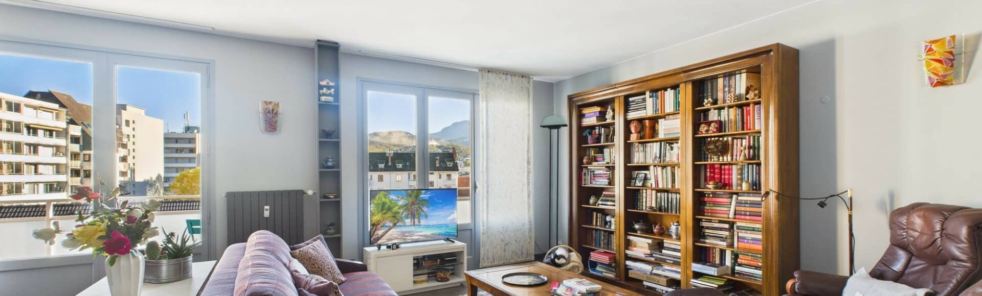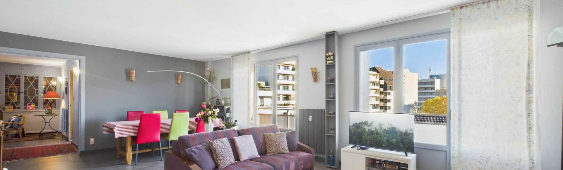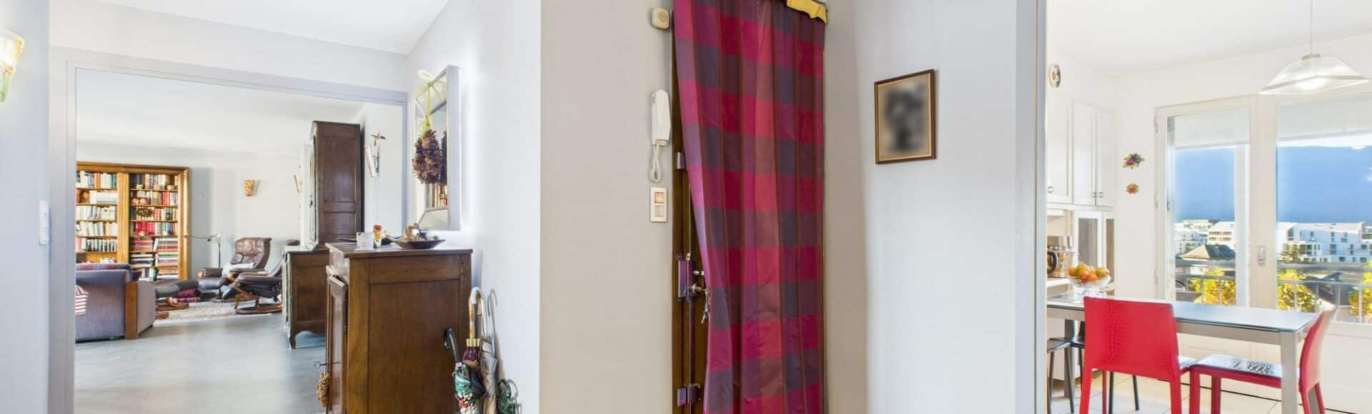 Appartement fonctionnel, traversant et lumineux au 6ème étage avec ascenseur dans une copropriété calme récemment rénovée (façades) et à quelques minutes à pieds du centre de Chambéry.