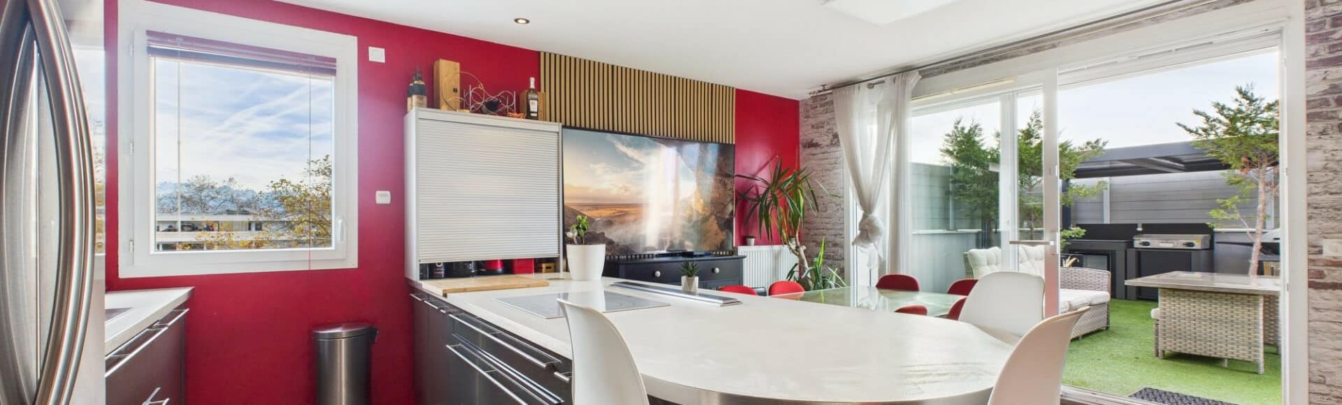 Baobab vous propose en exclusivité cet appartement T3 de 69 m2 avec terrasse de 83m2, garage-double et cave situé à l'entrée de Chambéry Le Haut au tarif de 259 900€ (Honoraires Baobab de 6600€ inclus).