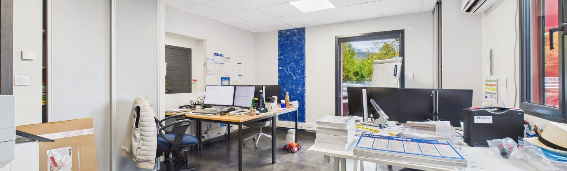 A découvrir, local commercial à usage de bureau construit en 2016, offrant de belles prestations et idéalement situé à proximités de toutes les commodités, du centre-ville de Chambéry ainsi que des accès immédiat à la voie rapide et autoroute. La construction du local est de 2016 avec des prestations de qualité : plancher chauffant, 2 bureaux aménagés, une salle d'eau entièrement équipée, WC indépendant. Possibilité d'aménagement supplémentaire selon vos besoins ( salle de réunion, open space, espace d'accueil ...). Terrasse extérieur + petit terrain de jouissance privative et places de stationnements privatives.
