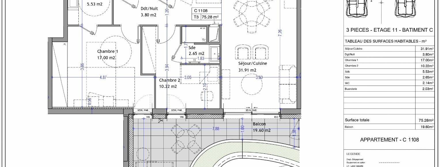 À Aix-les-Bains, dans la prestigieuse résidence « Les Nouveaux Thermes » - Découvrez cet appartement 3 pièces de 75,28m² située au 11ème étage côté Ouest. Cet appartement haut de gamme comprend : pièce de vie de 31,91 m² accueillant séjour cuisine et prolongée par un balcon végétalisé de 19,60 m² côté Ouest. L’espace nuit comprend un dégagement, une chambre de 17m², une chambre de 10,22m² avec salle d'eau, une salle de bains, une buanderie, un wc. Box en sous-sol sécurisé inclus. La résidence se distingue par ses prestations premium et son engagement environnemental : façades végétalisées sur 3,5 km, plus de 15 000 plantes, toitures vertes, récupération des eaux pluviales et planchers chauffants/rafraîchissants par géothermie. Contactez votre agence WellCome Immobilier pour réserver cet appartement d’exception parmi les premiers lots disponibles ! D’autres appartements neufs du T1 au T6 sont également proposés. Frais de notaire réduits Programme certifié RE2020 seuil 2022 & NF Habitat HQE Livraison prévue 1er trimestre 2029 Surface CARREZ : 75.28 m²