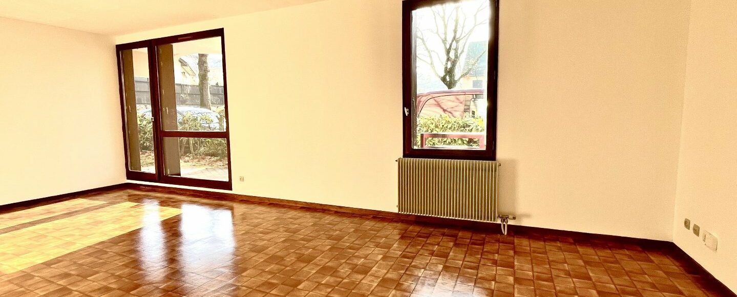 Situé à Chambéry-le-Haut au calme et dans un environnement pavillonnaire, ce vaste appartement Type 3 bis en rez-de-jardin offre un cadre de vie privilégié, à proximité des commodités, des écoles et des axes principaux. D’une surface généreuse de 77m² , il profite d’un agréable jardin privatif de 127m² environ, véritable prolongement de l’espace de vie, idéal pour les beaux jours. L’appartement se compose d’une pièce de vie lumineuse avec cuisine à équiper ouverte sur un séjour donnant directement accès au jardin. Il comprend 2 chambres confortables dont l'une de plus de 20m² , une salle de bains, ainsi qu’un WC indépendant. Un dégagement avec rangements à l’entrée complète l’ensemble. Les prestations incluent huisseries en double vitrage bois, volets roulants, chauffage individuel au gaz, garantissant confort et maîtrise des consommations. Un garage fermé peut être proposé en supplément, apportant un réel atout au cœur d’un secteur résidentiel. La copropriété offre un cadre agréable et sécurisé et met de nombreux stationnements à disposition des résidents. Honoraires à la charge du vendeur Bien soumis au statut juridique de la Copropriété. Nb de lots : 40. Charges annuelles de copropriété (Montant moyen annuel quote-part du budget prévisionnel vendeur) : 1 508 €. Pas de procédure en cours. Surface CARREZ : 77.24 m²