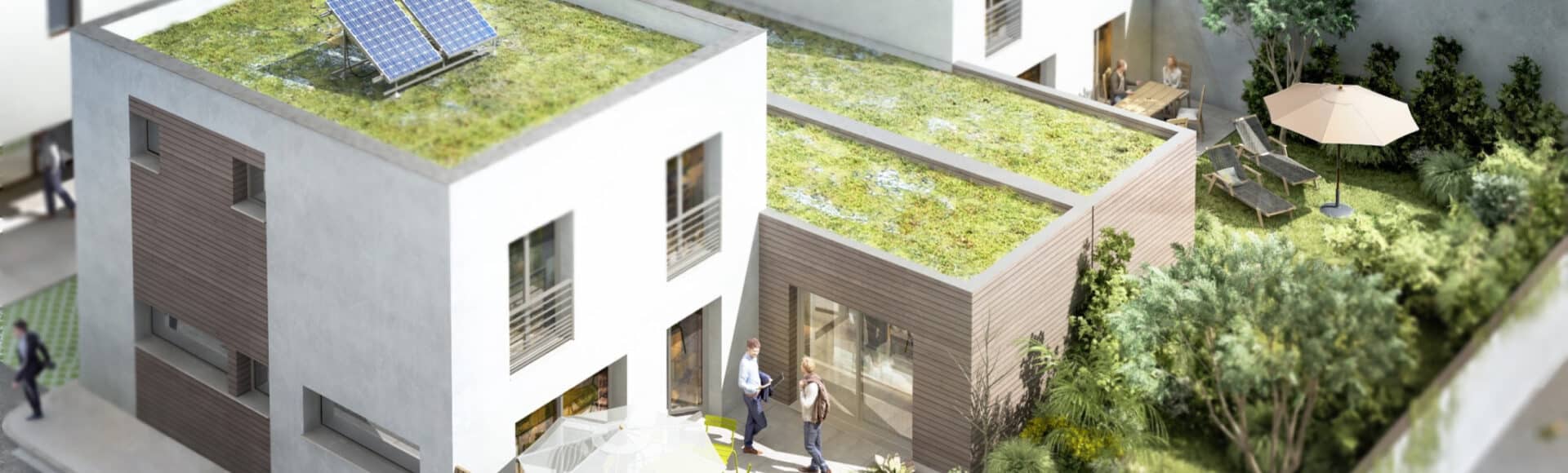 De grands espaces de vie. Avec son architecture contemporaine et qualitative. Composée de seulement 7 logements du T2 au T5, et de deux maisons individuelles, les surfaces sont particulièrement généreuses. Tous les logements sont prolongés d'un balcon, d'une terrasse et pourcertains d'un jardin.