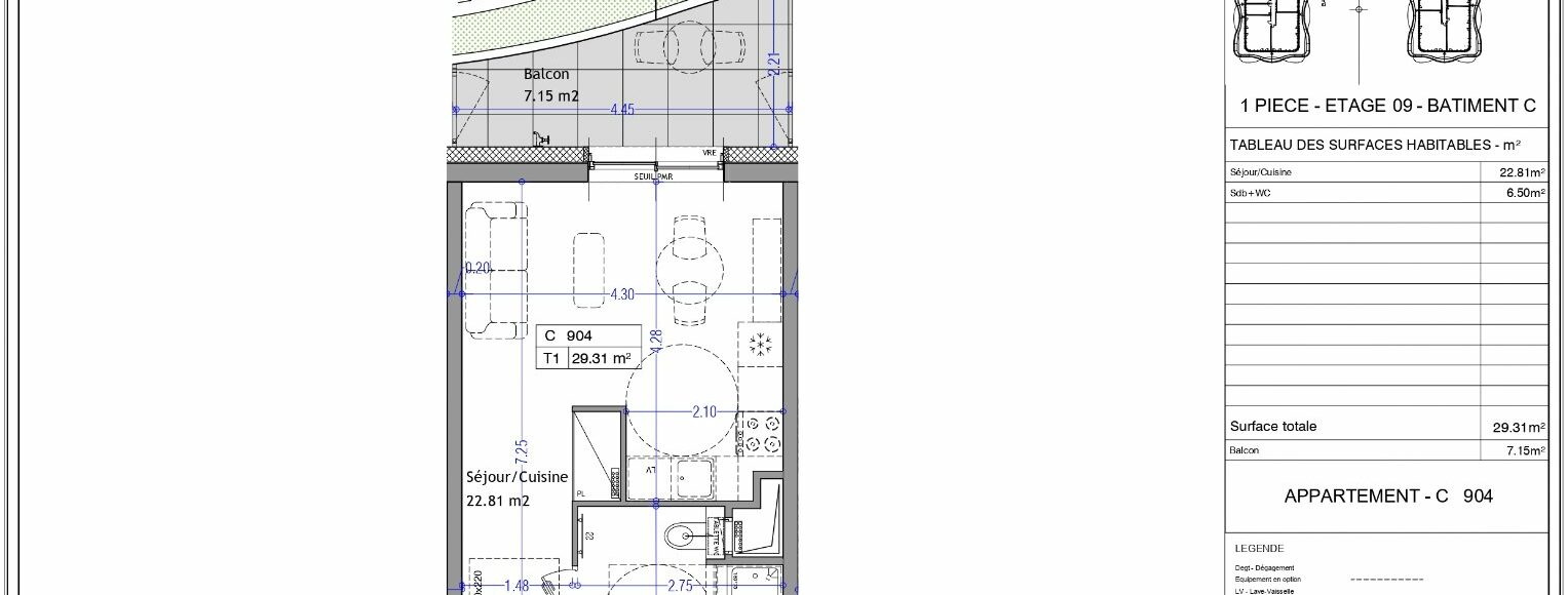 Superficie : 29 m²