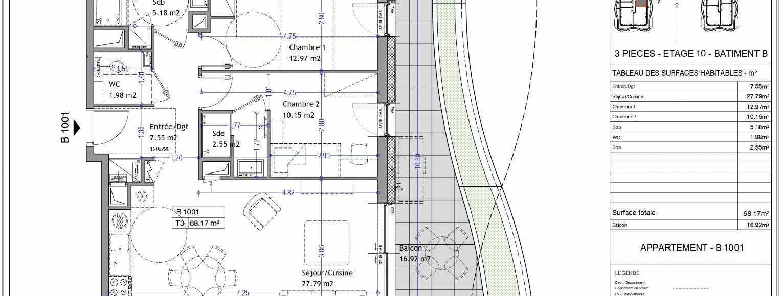 À Aix-les-Bains, dans la prestigieuse résidence « Les Nouveaux Thermes » - Découvrez cet appartement 3 pièces de 68,17m² située au 10ème étage côté Sud du bâtiment Nord. Cet appartement haut de gamme comprend : entrée/dégagement, séjour cuisine de 27,79m² prolongée par un balcon végétalisé de 16,92 m² côté SUD. L’espace nuit comprend 2 chambres dont une suite parentale avec salle d’eau, une salle de bains, un WC indépendant. Place de parking au sous-sol sécurisé inclus. La résidence se distingue par ses prestations premium et son engagement environnemental : façades végétalisées sur 3,5 km, plus de 15 000 plantes, toitures vertes, récupération des eaux pluviales et planchers chauffants/rafraîchissants par géothermie. Contactez votre agence WellCome Immobilier pour réserver cet appartement d’exception parmi les premiers lots disponibles ! D’autres appartements neufs du T1 au T6 sont également proposés. Frais de notaire réduits Programme certifié RE2020 seuil 2022 & NF Habitat HQE Livraison prévue au 4ème trimestre 2028 Surface CARREZ : 68.17 m²