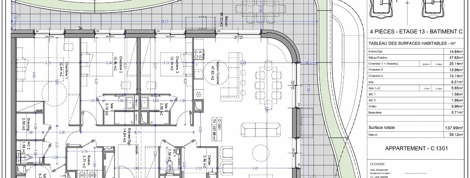 Aix-les-Bains, dans la prestigieuse résidence « Les Nouveaux Thermes » - Découvrez cet appartement d’exception T4 de 137,87m² en Attique au 13ème étage côté Nord-Est du bâtiment Sud. Cet appartement unique se distingue par une distribution intérieure remarquable : entrée, pièce de vie de 47,67m² accueillant séjour cuisine et prolongée par un blacon végétalisé de 59,12m² orientée Nord-Est, offrant de superbes vues sur les massifs alpins. L’espace nuit comprend : un dégagement, deux chambres avec salle d’eau, une chambre avec salle de bains/WC et dressing, une buanderie, un cellier et des WC indépendants. Vendu avec un garage et une place de stationnement en sous-sol sécurisé. La résidence se distingue par ses prestations premium et son engagement environnemental : façades végétalisées sur 3,5 km, plus de 15 000 plantes, toitures vertes, récupération des eaux pluviales et planchers chauffants/rafraîchissants par géothermie. Contactez votre agence WellCome Immobilier pour réserver cet appartement d’exception parmi les premiers lots disponibles ! Frais de notaire réduits Programme certifié RE2020 seuil 2022 & NF Habitat HQE Livraison 1er trimestre 2029