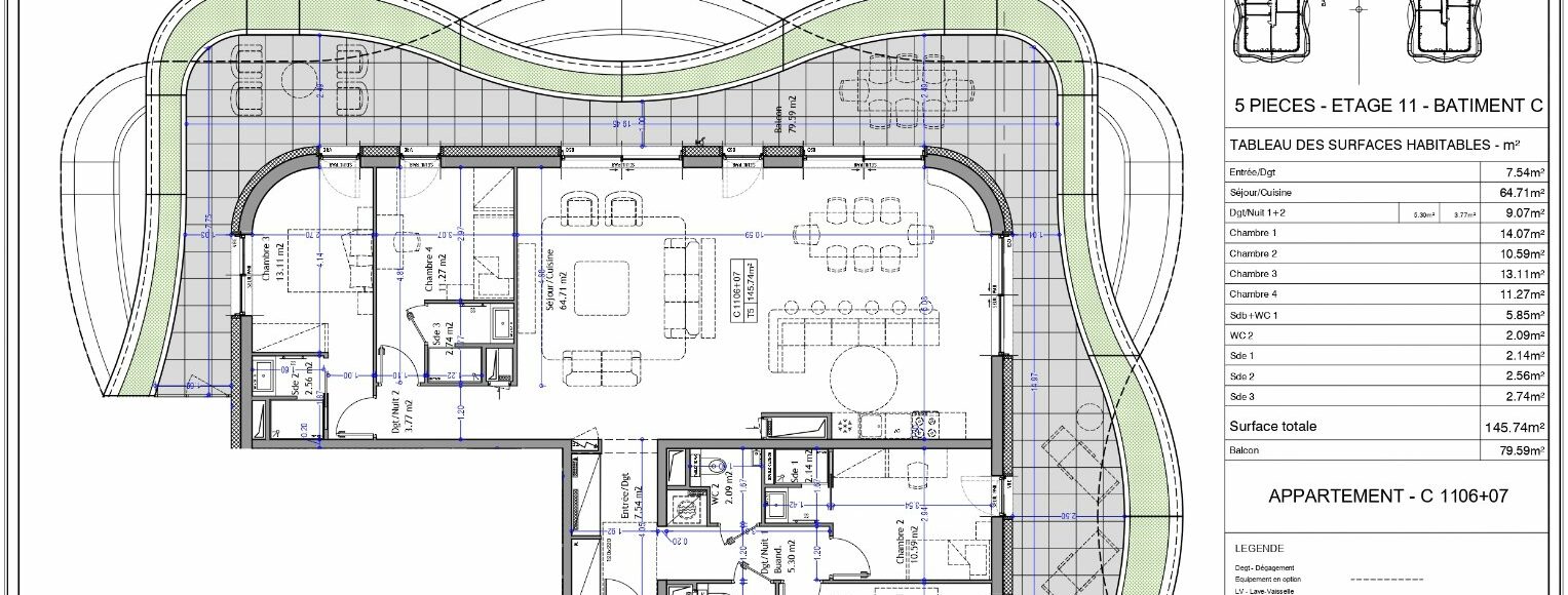 À Aix-les-Bains, au cœur de la prestigieuse résidence «Les Nouveaux Thermes» - Découvrez cet appartement T5 d’exception de 145,74 m² au 11ème étage, offrant une triple exposition Est–SUD–Ouest. Cet appartement unique séduit par sa remarquable distribution intérieure : une entrée, une pièce de vie spectaculaire de près de 64,71 m² intégrant séjour et cuisine, baignée de lumière grâce à de larges baies vitrées s’ouvrant sur une terrasse végétalisée de 79 m² orientée Est–SUD–Ouest. Celle-ci offre des vues panoramiques à couper le souffle sur les massifs alpins et le lac du Bourget. La partie nuit comprend : 3 chambres avec salle d’eau, une chambre, une salle de bains avec WC ainsi qu’un WC indépendant. Vendu avec 2 garages en sous-sol sécurisé. La résidence « Les Nouveaux Thermes » se distingue par ses prestations haut de gamme et son engagement environnemental exemplaire : façades végétalisées sur plus de 3,5 km, plus de 15 000 plantes, toitures vertes, récupération des eaux pluviales et planchers chauffants/rafraîchissants par géothermie. Contactez votre agence WellCome Immobilier pour réserver cet appartement d’exception parmi les premiers lots disponibles ! Frais de notaire réduits Programme certifié RE2020 seuil 2022 & NF Habitat HQE Livraison 1er trimestre 2029 Surface CARREZ : 145.74 m²