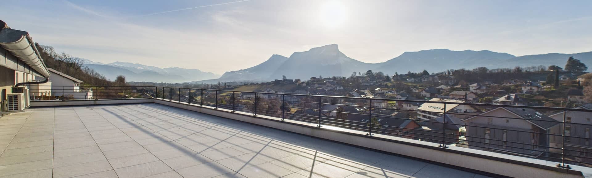 - surface habitable : 115m2 - Garage fermé de 22m2 avec porte motorisé - Deux terrasses dont une exceptionnelle terrasse rooftop de 170m2 au dernier étage offrant une vue imprenable sur les montagnes - jardin privatif sur terrain de 350m2, idéal pour un potager ou espace détente - Place de parking privative et local à vélos