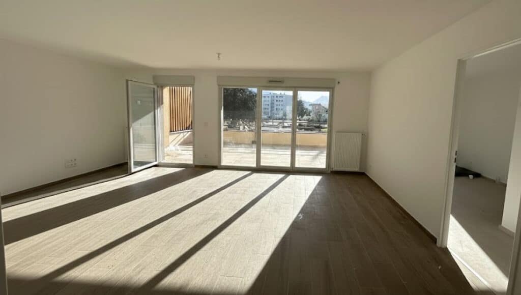 Découvrez ce charmant T4 de 83.80 m2 dans notre résidence Le Gustave situé au 19 rue Gustave Guerre à VIF, à deux pas du centre-ville et des commodités, cet appartement se compse d'un hall d'entrée avec placard, d'un séjour avec cuisine ouverte de 30.75 m2 s'ouvrant sur une belle terrasse de 30.80 m2 avec vue dégagée sur les montagnes plein SUD. Il y a également une salle de bain avec WC indépendant et 3 chambres de 9.55 m2, 10.35 m2 et 13.75 m2 avec salle d'eau privative. Profitez de prestations soignées et avantageuses telles qu'un ascenseur, un chauffage individuel au gaz et la possibilité d'obtenir un garage fermé en sous-sol.