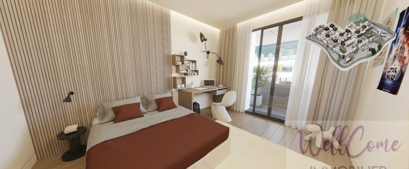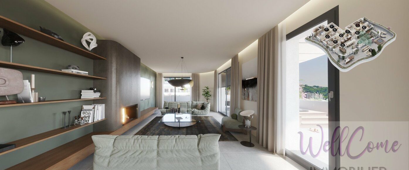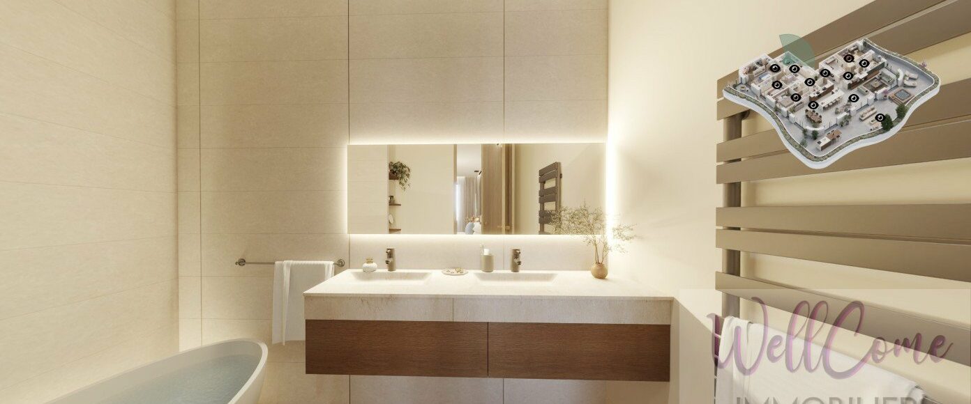 À Aix-les-Bains, au sein de la résidence haut de gamme « Les Nouveaux Thermes » signée par l’architecte de renom Vincent Callebaut, découvrez ce rare appartement premium de 6 pièces d’une surface de 240,73 m² habitables situé au 12ème étage sur 13 et bénéficiant d’une triple exposition N-S-O. Ce bien d’exception offre des volumes remarquables et une distribution parfaitement pensée : -Séjour / Cuisine : 103,56 m² (exposition OUEST) -Entrée / dégagement -Dégagement nuit -5 chambres : 22,35 m², 12,85 m², 15,34 m², 22,30 m² et 13,94 m² -2 salles de bains avec WC -3 salles d’eau -2 WC indépendants -1 cellier et 1 buanderie Un balcon végétalisé de 92,17 m² en triple exposition Nord / Ouest / Sud, offre une vue dégagée sur le lac et les montagnes pour un cadre de vie unique ! Vendu avec 2 garages sécurisés en sous-sol. La résidence dispose également de locaux vélos et poussettes sécurisés. Les prestations intérieures sont remarquables : hauteur sous plafond de 2,98 m, plancher chauffant/rafraîchissant alimenté par géothermie, choix des teintes de carrelage, huisseries en aluminium double vitrage avec brise-soleil orientables (BSO) et volets roulants électriques. La résidence se distingue par ses prestations premium et son engagement environnemental exemplaire : façades végétalisées (3,5 km et plus de 15 000 plantes), toitures végétalisées, récupération des eaux pluviales, chauffage et rafraîchissement par géothermie… Contactez votre agence WellCome Immobilier pour réserver cet appartement d’exception parmi les lots disponibles ! Visite virtuelle sur demande. Frais de notaire réduits Programme certifié RE2020 seuil 2022 & NF Habitat HQE Livraison prévue : 1er trimestre 2029 Surface CARREZ : 240.78 m²