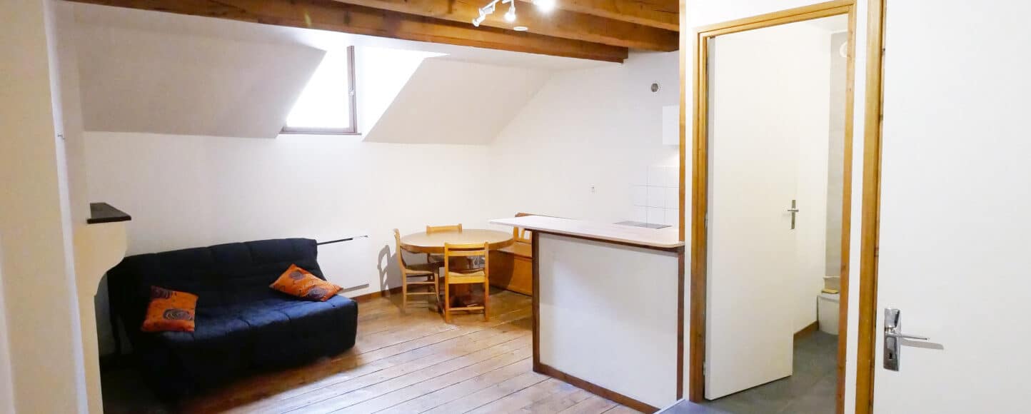 Niché au coeur du centre historique de Chambéry, dans un immeuble classé, cet appartement studio en étage de la maison est spacieux et offre un morceau d'histoire. Ses prestations sont impeccables, mélant un parquet d'origine et des poutres apparentes avec une rénovation récentes des enduits, de la kitchenette et de la salle de bain.