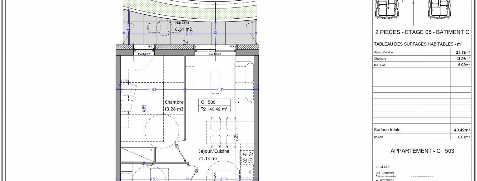 Superficie : 40 m²