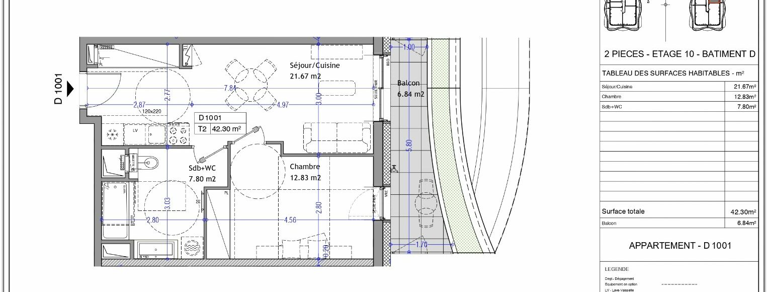 Superficie : 42 m²