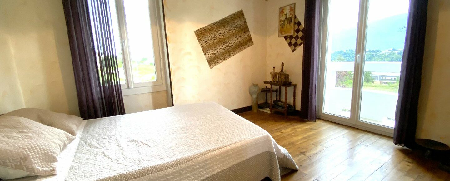 EXCLUSIVITE ! AIX LES BAINS premières hauteurs à quelques minutes du centre et des commerces, avec établissements scolaires et ligne de bus à proximité, maison 10 pièces sur 518 m² de terrain clos et arboré avec vues dégagées. Cette jolie bâtisse ancienne, entièrement restaurée, offre de belles surfaces: 210.26 m² habitables et 255m² de surface au sol totale. Le rez de chaussée comprend une pièce de vie de 30m² avec cuisine équipée et salle à manger, un salon de 28m², un hall, une salle d'eau, un WC séparé. Terrasse plein sud et accès au jardin par les baies vitrées. Le premier étage accueille 4 chambres de 12 à 13m², un grand dressing, une salle d'eau et un WC séparé. Balcons à l'ouest. Le 2e étage comprend 2 chambres, bureau et salle de bains avec WC Une cave voutée de 29 m² vient compléter la surface. Le terrain permet le stationnement de plusieurs véhicules devant la maison et permet également de profiter des extérieurs à la belle saison. Le chauffage est assuré par une chaudière gaz. L'ensemble des huisseries a été remplacé par des fenêtres et portes-fenêtres en PVC avec double vitrage et volets électriques ou manuels. Une maison de caractère à la belle allure, idéale pour accueillir votre famille ou vos amis de passage. A découvrir rapidement! Honoraires TTC charge vendeur Les informations sur les risques auxquels ce bien est exposé sont disponibles sur le site Géorisques
