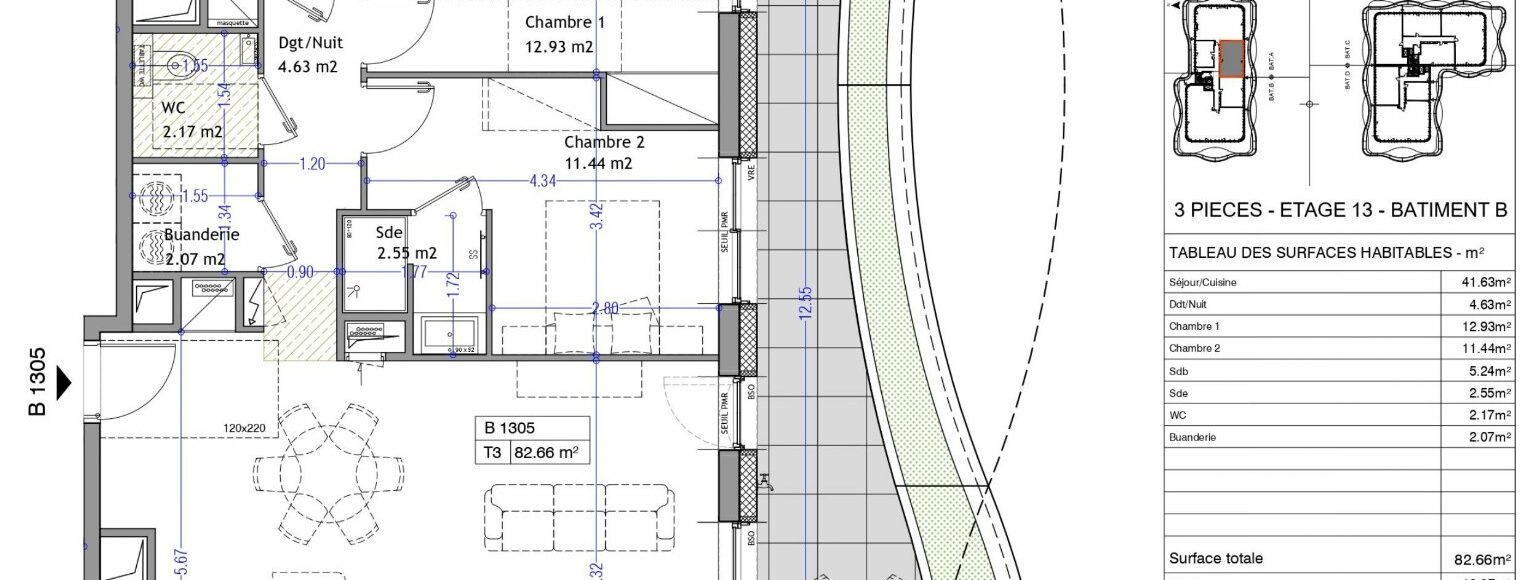 Appartement PREMIUM T3 de 82m² en Attique - 1 Box inclus – Résidence « Les Nouveaux Thermes » à Aix-les-Bains Au cœur d’Aix-les-Bains, au sein de la prestigieuse résidence « Les Nouveaux Thermes », découvrez cet appartement 3 pièces de 82,66 m² en attique au 13ème étage côté Sud. Ce bien de prestige séduit par ses volumes, sa luminosité et une distribution pensée pour un confort de vie haut de gamme. Description de l’appartement T3 : -Séjour/Cuisine : 41,63m² -Dégagement/Nuit : 4,63m² -1 Chambre avec salle d'eau : 14m² -1 Chambre : 12,93m² -Salle de bain : 5,24m² -Buanderie et WC indépendant L’appartement s’ouvre sur un balcon végétalisé de 18,97 m² côté Sud. 1 garage au sous-sol sécurisé inclus. Résidence équipée de locaux vélos et poussettes sécurisés. Prestations haut de gamme : hauteur sous plafond 2,98 m, plancher chauffant et rafraîchissant par géothermie, menuiseries aluminium double vitrage, BSO, volets roulants électriques. Personnalisation des finitions possible. Résidence à haute performance environnementale : façades et toitures végétalisées, récupération des eaux pluviales, chauffage et rafraîchissement par géothermie. Contactez votre agence WellCome Immobilier à Aix-les-Bains pour réserver cet appartement d’exception parmi les lots disponibles ! Livraison : 4ème trimestre 2028 Frais de notaire réduits Programme certifié RE2020 seuil 2022 & NF Habitat HQE Surface CARREZ : 82.66 m²