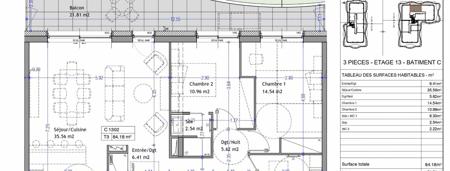Superficie : 84 m²