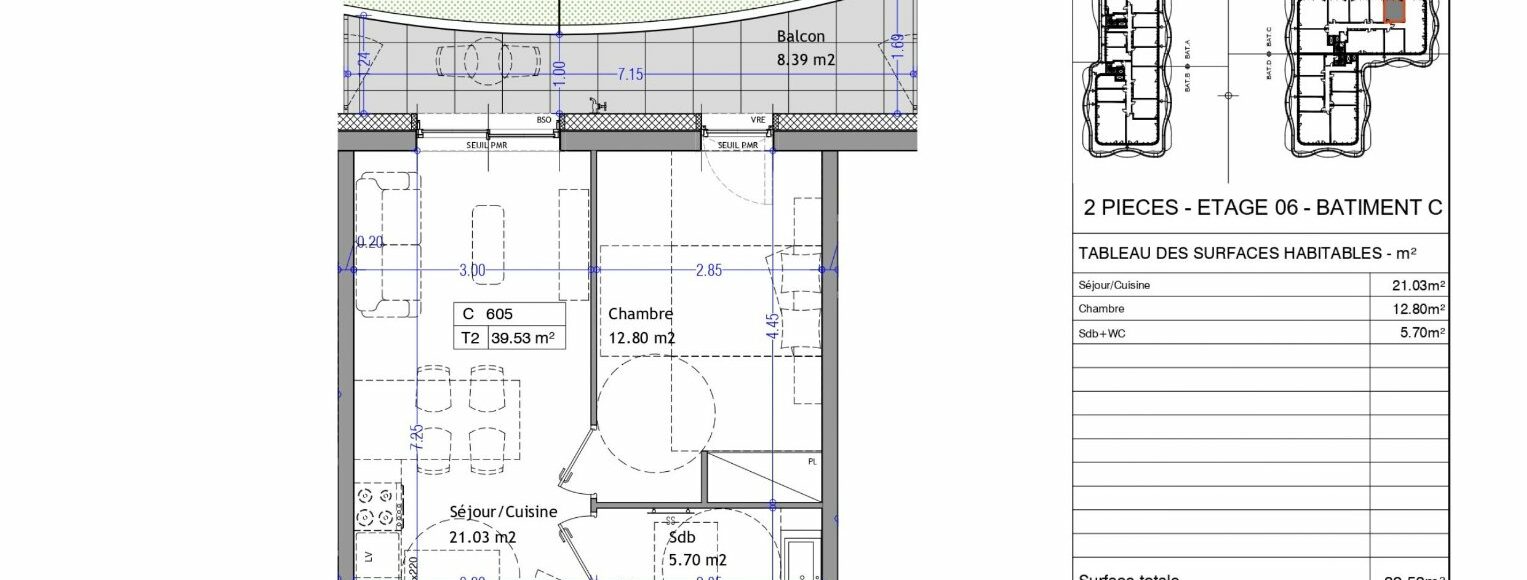 Superficie : 39 m²
