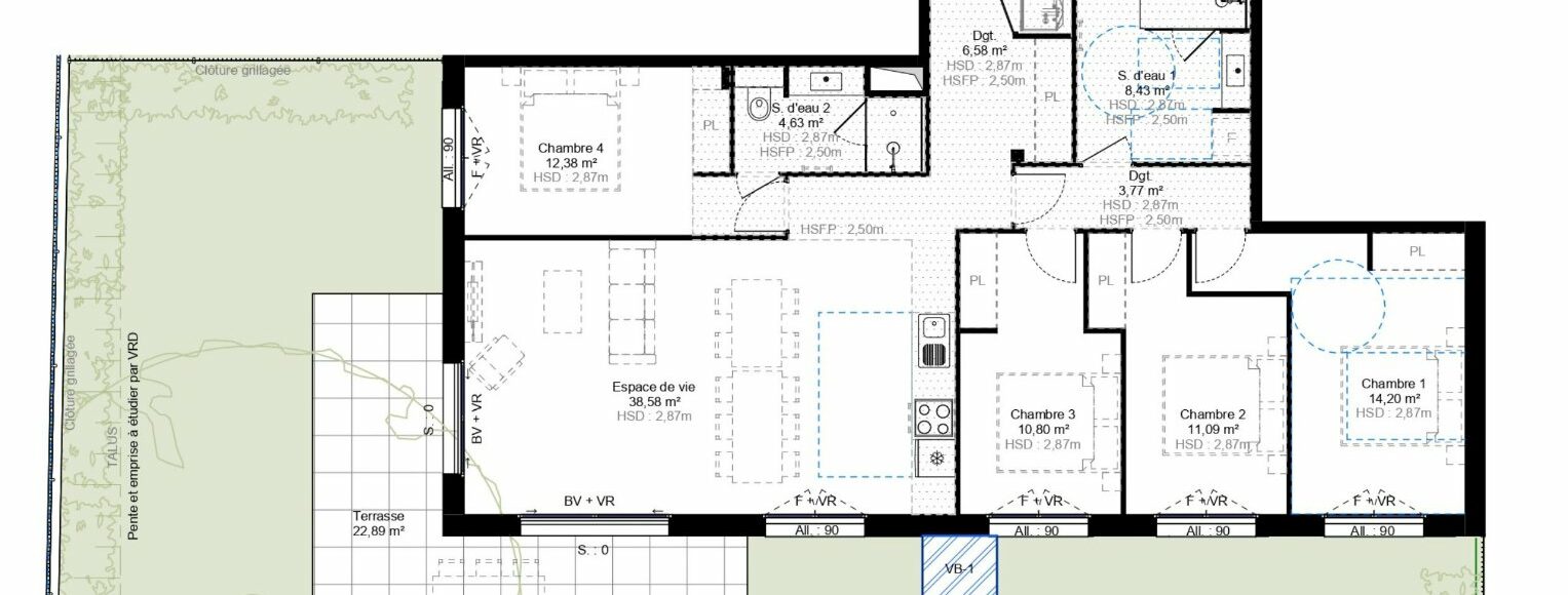 Appartement neuf T5 de 120,76 m² en rez-de-jardin coté SUD + 2 Box – Challes-les-Eaux À Challes-les-Eaux, sur l’Avenue de Chambéry à seulement 400 m du centre-ville dans la nouvelle résidence « Belle Horizon », découvrez cet appartement neuf 3 pièces de 66,82 m² situé au 1er étage sur 3 et bénéficiant d’une belle exposition Sud. La résidence se compose de deux bâtiments à taille humaine (2 étages + attique), à l’architecture élégante et contemporaine, conçus pour s’intégrer harmonieusement dans leur environnement naturel. Offre commerciale du 15/02/26 au 31/03/26 : Frais de notaire OFFERTS et 2.000 € de REMISE par pièce sur un grand nombre de logements. L’appartement T5 comprend : -Entrée / 2 Dégagements : 14,76m² -Séjour/Cuisine : 38,58m² côté Sud-Ouest avec accès terrasse et jardin de 147,84m² -1 Chambre avec salle d'eau et WC : 17,01m² -3 Chambres : 10,80m², 11,09m², 14,20m² -Salle d'eau 8,43m² et WC indépendant : 4,15m² -Cellier interieur : 1,75m² Vendu avec 2 garages au sous-sol. Présence de locaux vélos dans la résidence. D’autres appartements (du T2 au T5) sont disponibles dans la résidence Pour plus d’informations et pour réserver votre futur appartement, contactez votre agence WellCome Immobilier ! Frais de notaires réduits Livraison : 4ème Trimestre 2027 Programme conforme RE 2020, seuil 2022 Éligible : Accession Libre, Jeanbrun, Zone B1, LMNP Prix TTC et Honoraires à charge vendeur TTC Bien soumis au statut juridique de la Copropriété. Nb de lots : 36. Pas de procédure en cours. Surface CARREZ : 120.76 m²