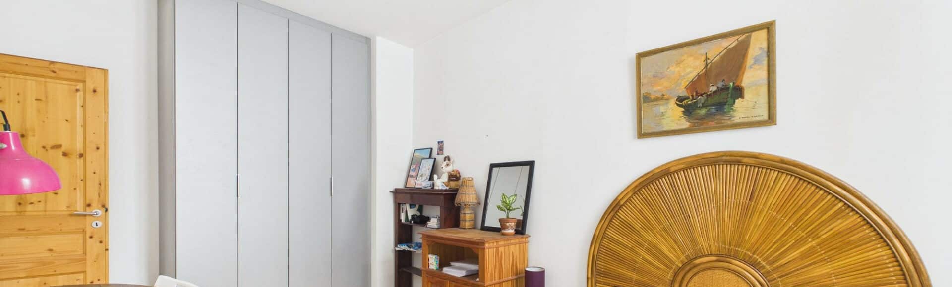 Un second coin nuit distribue une chambre avec rangements et sa salle de bains associée.
