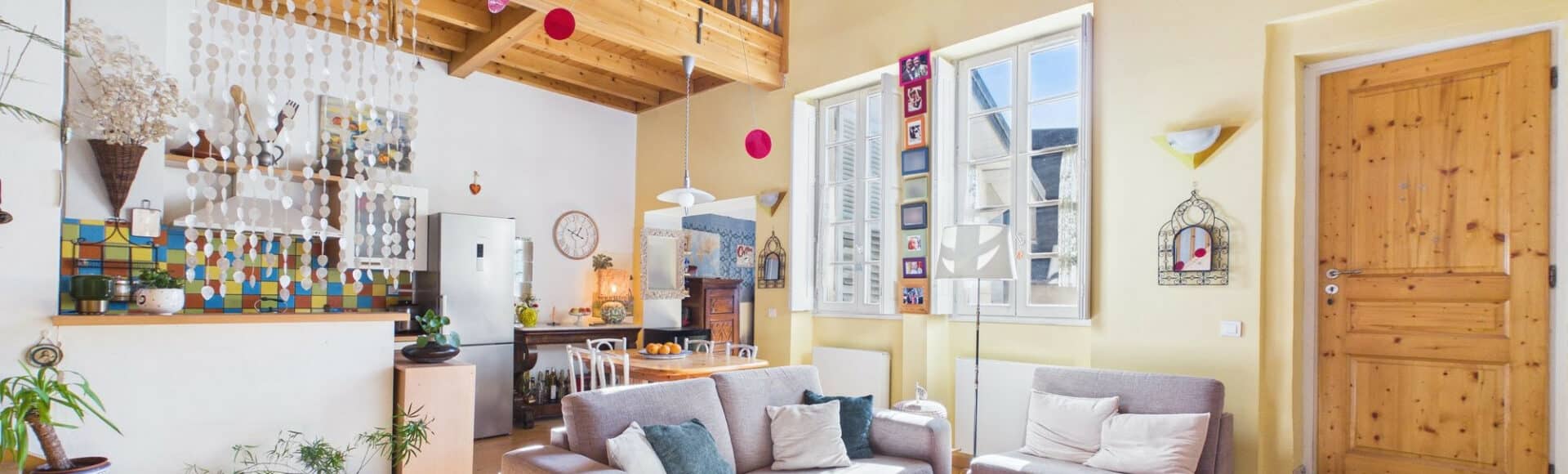 Descriptif : Hall d'entrée distribuant une vaste pièce de vie lumineuse de 36m² avec cuisine équipée américaine, salon/séjour et coin repas.