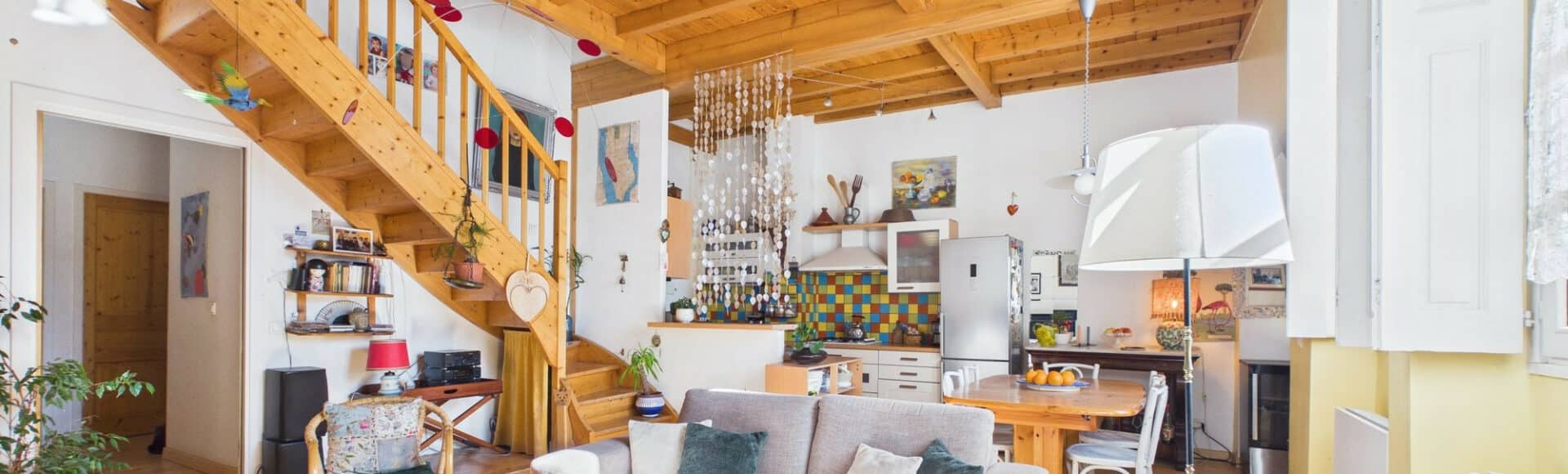 A l'étage, la mezzanine d'une superficie de 28 m² permet différents aménagements (bureau, coin tv, chambre d'amis...)
