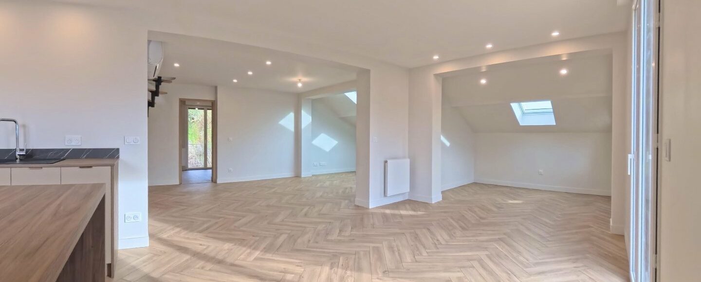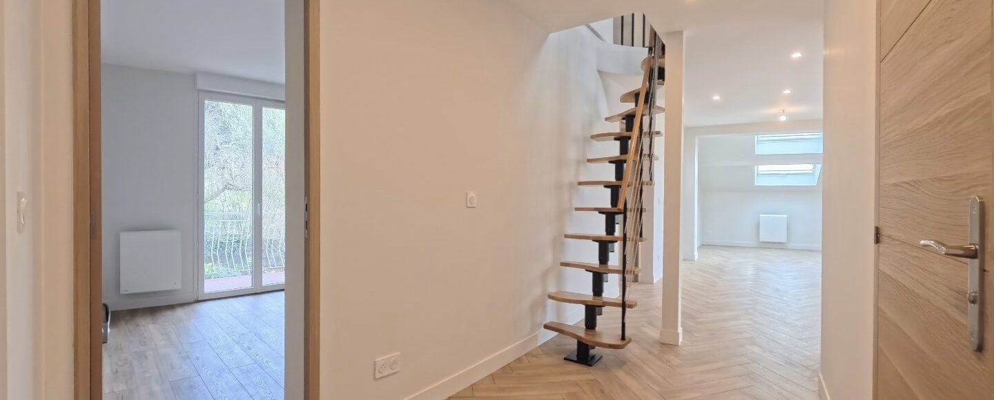 À Aix-les-Bains, à 5 min du centre-ville et proche des commodités - Découvrez ce bel appartement T3 Bis duplex de 100,19 m² Loi Carrez (152,90 m² au sol) refait neuf, situé au 2ème étage d’une copropriété de 4 appartements. Le logement se compose d’une véranda et d’une terrasse donnant accès au hall d’entrée, un vaste espace de vie de 52,73 m² Carrez (61,4 m² au sol) avec salon/salle à manger et cuisine ouverte de qualité, prolongé par un balcon de 6,83 m² exposé Ouest avec vue dégagée sur les montagnes. L’espace nuit comprend une suite parentale avec salle d’eau et dressing, une seconde chambre avec accès à un balcon côté Est, ainsi qu’une salle d’eau et un WC indépendant. À l’étage, les combles aménagés (41,13 m² au sol) offrent un espace modulable : chambres supplémentaires, bureau, salle de jeux ou espace détente. Place de stationnement extérieure incluse et présence d’un local vélos dans la résidence. Prestations : huisseries double vitrage PVC avec volets roulants électriques, chauffage électrique individuel, climatisation réversible, VMC simple flux, cumulus 100 L. Faibles charges de copropriété (syndic bénévole). Un appartement lumineux, confortable et fonctionnel, idéal pour profiter d’un cadre de vie privilégié entre lac et montagnes. Contactez votre agence WellCome Immobilier pour une visite ! Bien soumis au statut juridique de la Copropriété. Nb de lots : 13 (dont 4 lots d’habitation). Charges annuelles de copropriété : 535 €. Pas de procédure en cours. Honoraires à la charge du vendeur