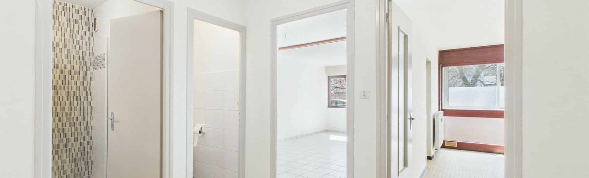 Un grand hall d'entrée avec placard, une pièce de vie baignée de lumière de 21m2 avec cuisine aménagée attenante donnant sur un balconnet de 4m2 et une salle d'eau et un WC séparé.