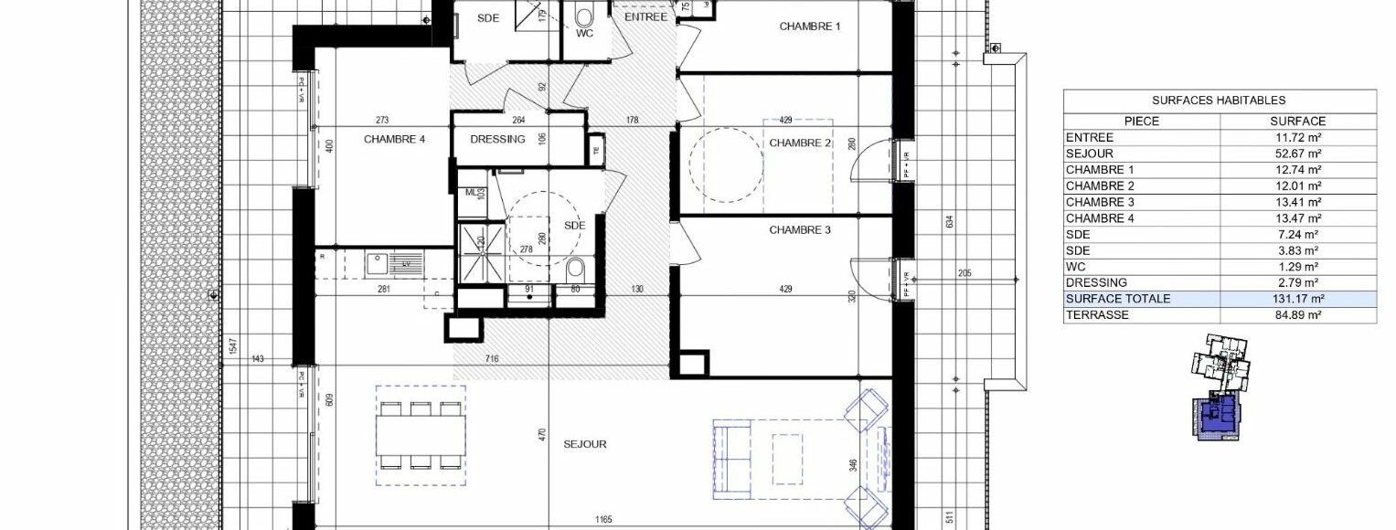 Superficie : 131 m²