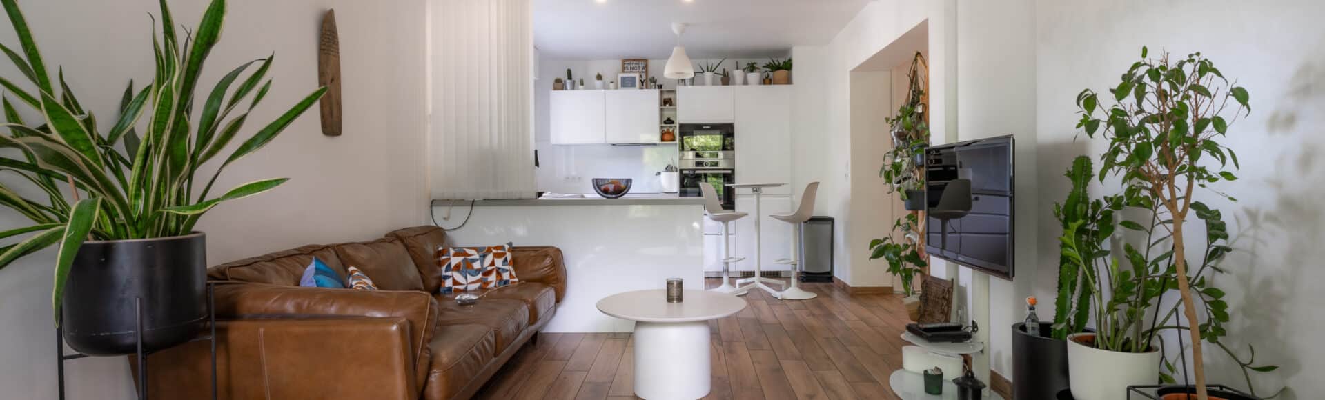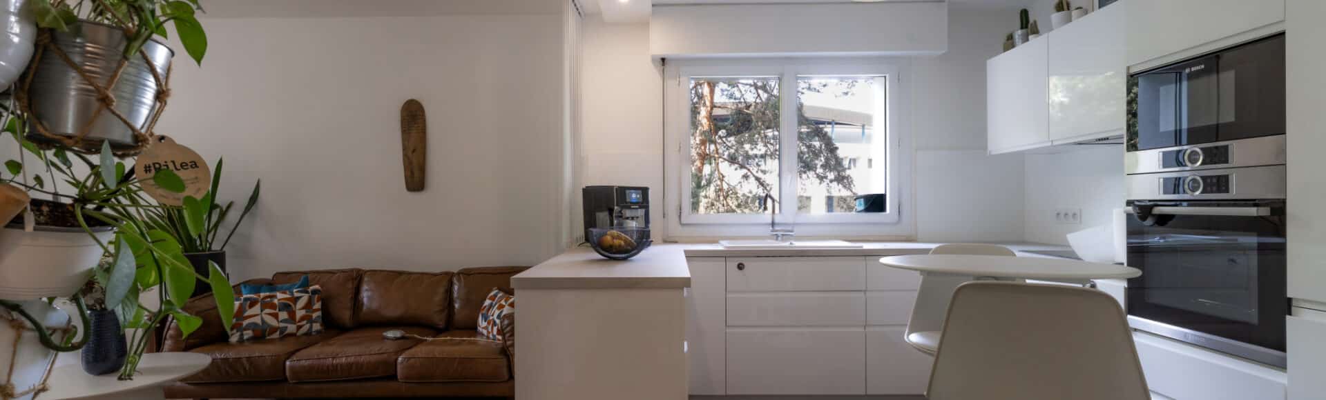 Une belle pièce de vie lumineuse avec cuisine ouverte