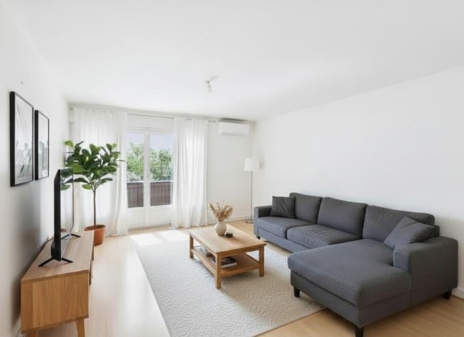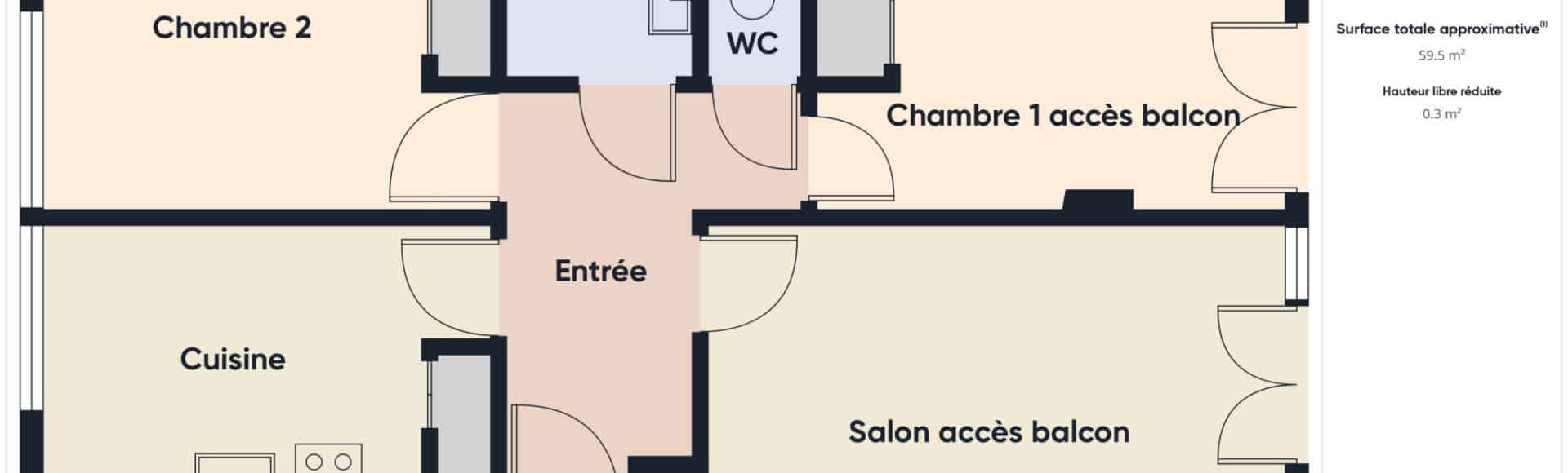 Il se compose d'une entrée desservant une cuisine semi-équipée avec petite loggia, idéale pour un espace de rangement, un salon lumineux climatisé dispose également d'un accés au balcon, apportant un agréable espace extérieur supplémentaire. L'espace nuit comprend deux chambres avec placards, dont une bénéficiant d'un accès au balcon. Vous trouverez également une salle d'eau ainsi que des WC séparés pour plus de confort au quotidien.