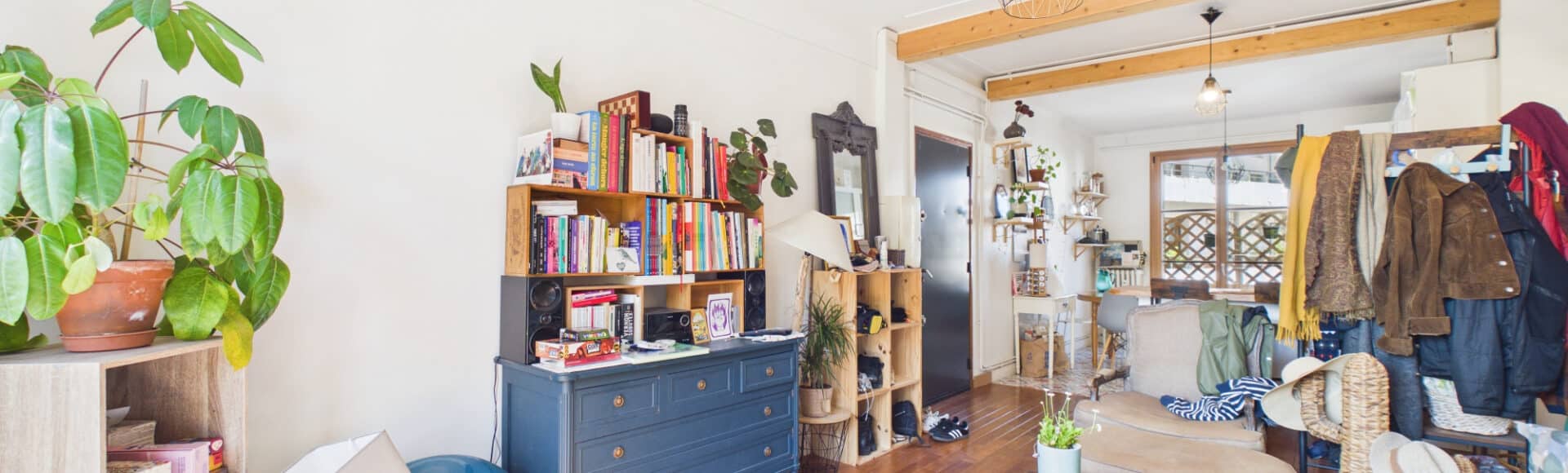 Situé au 2? étage (sans ascenseur) d'une copropriété des années 50 bien entretenue, cet appartement lumineux vous séduira dès l'entrée par son caractère authentique : poutres apparentes et parquet massif donnent le ton.