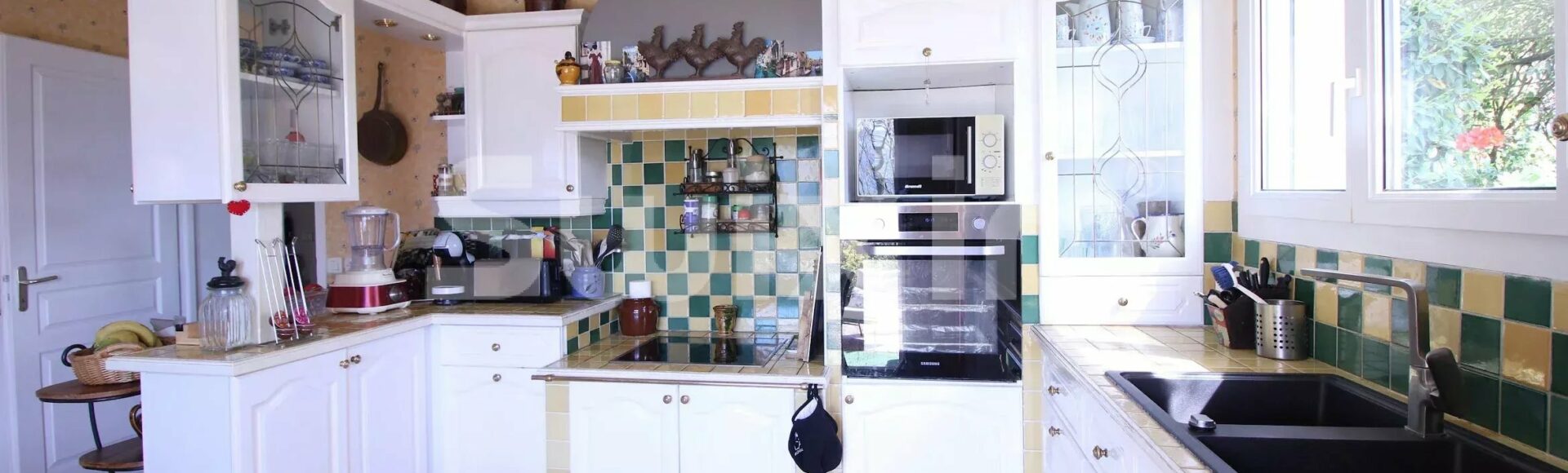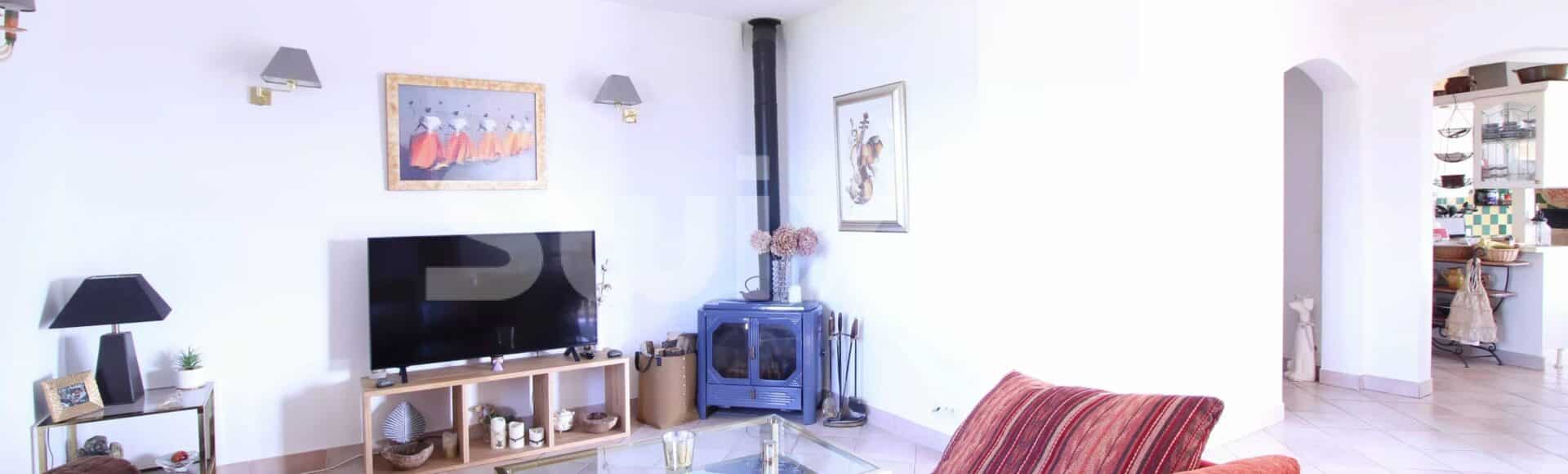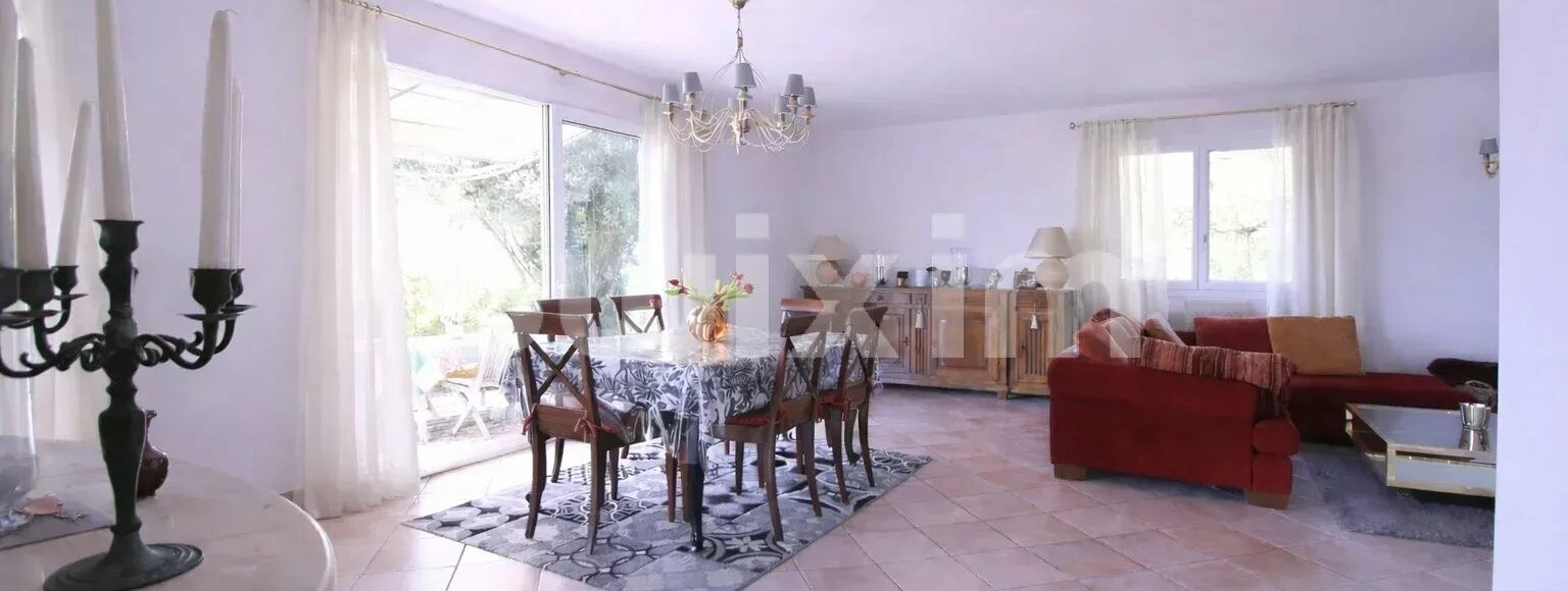 The large living spaces are bathed in light thanks to the large bay windows, providing direct access to a beautiful landscaped garden.