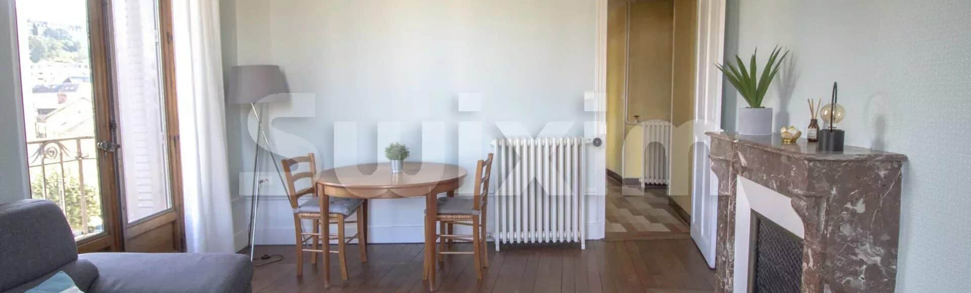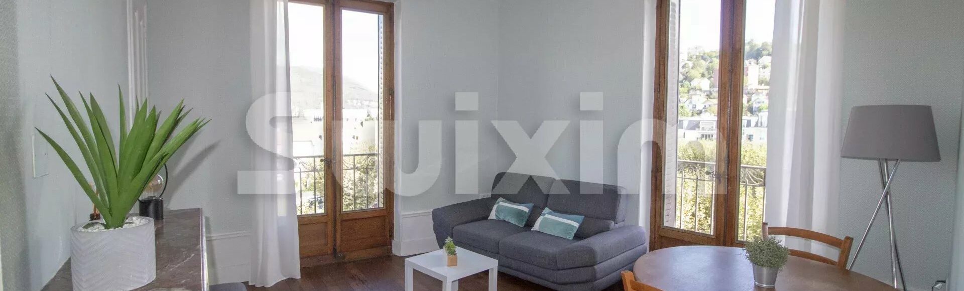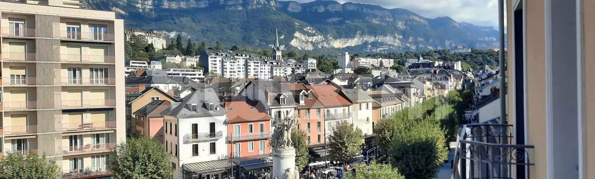 3200DF : Located in the heart of Aix-les-Bains, this 41.3 m² loi carrez type 2 apartment on the 4th floor out of 5 is bathed in light thanks to its high ceilings and 3 balconies. It offers an exceptional living environment in a listed building. You’ll enjoy a cosy living room with the charm of an old fireplace and moldings, a bedroom, a functional independent kitchen and a shower room with toilet. Close to shops, a 10-minute walk from the train station, a 20-minute walk from Lac du Bourget and 3 km from the freeway, this apartment is ideally located in a quiet area with panoramic views.