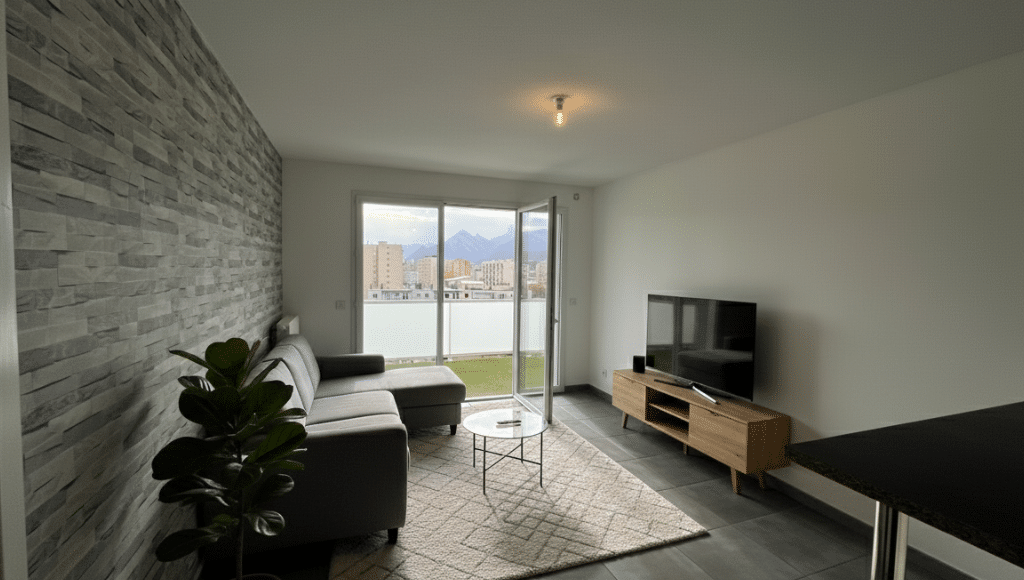 ECHIROLLES, 1 avenue Paul Vaillant Couturier - LE BELLAGIO, venez découvrir ce T3 résidence de 2018 - 58.09 m2 au 7ème étage sur 9 avec ascenseur, dans résidence de qualité aux dernières normes d'isolation, comprenant une entrée avec placard , un séjour et coin cuisine aménagée et équipée comprenant plaque de cuisson et hotte d'une surface de 26m2 offrant un balcon terrasse exposé SUD de 12m2 avec vue dégagée sur les montagnes, un dégagement, 2 chambres de 9.2m2 et 14.1m2 (dont une avec grand placard aménagé), une salle de bain avec emplacement Lave Linge, un WC séparé. Un garage en sous-sol est inclus dans la location. A proximité immédiate des transports en communs (bus au pied de l'immeuble), supermarchés, centre commercial LECLERC, commerces... Loyer 781 EUR + provisions sur charges, chauffage et eau chaude 100 EUR avec régularisation annuelle. Frais d'agence 580.90EUR et 174.27EUR de frais d'état des lieux. Dépôt de garantie 781 EUR. Bien soumis au statut de la LOI PINEL (critères de revenus à respecter). Disponible immédiatement