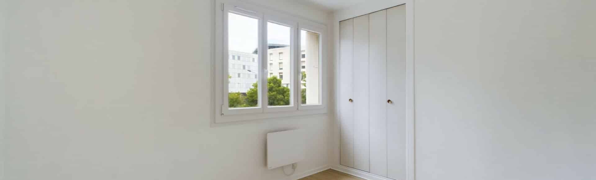 Chauffage électrique, eau chaude collective gaz, volets manuels, menuiserie pvc/bois double vitrage.